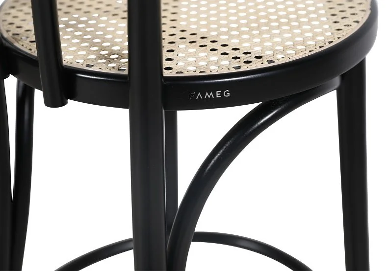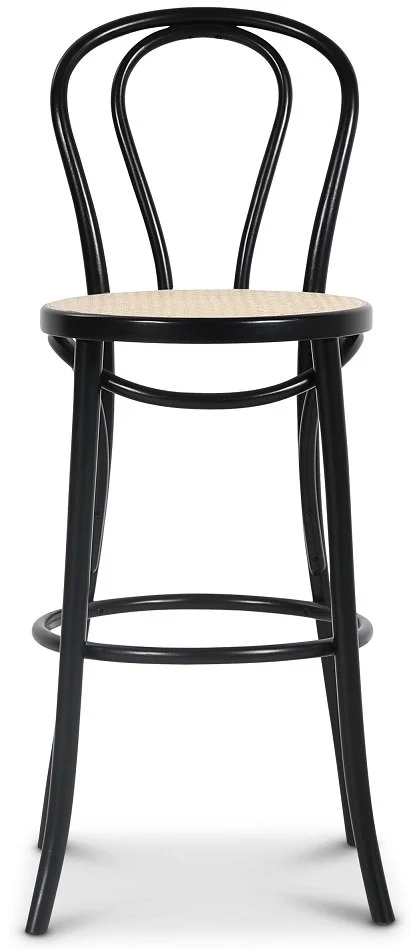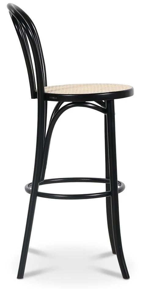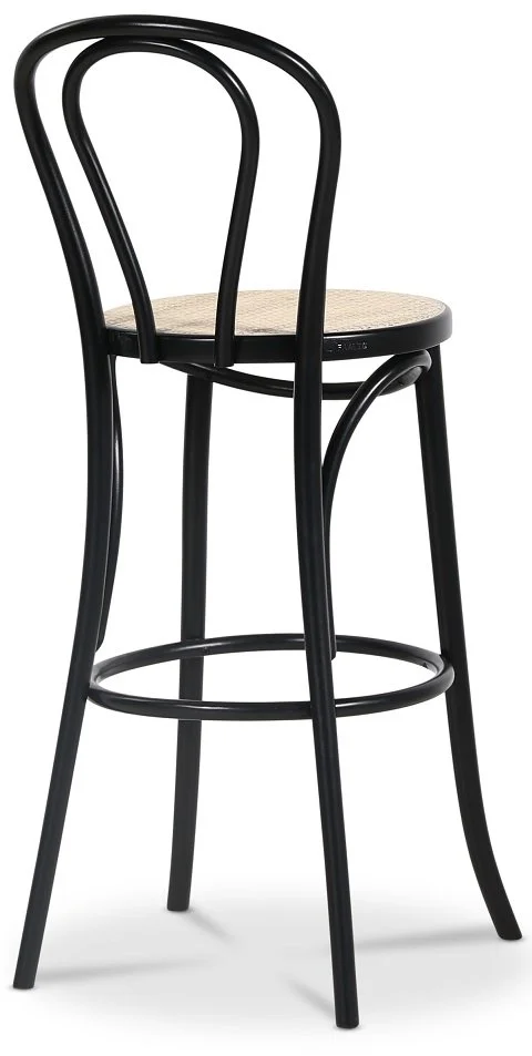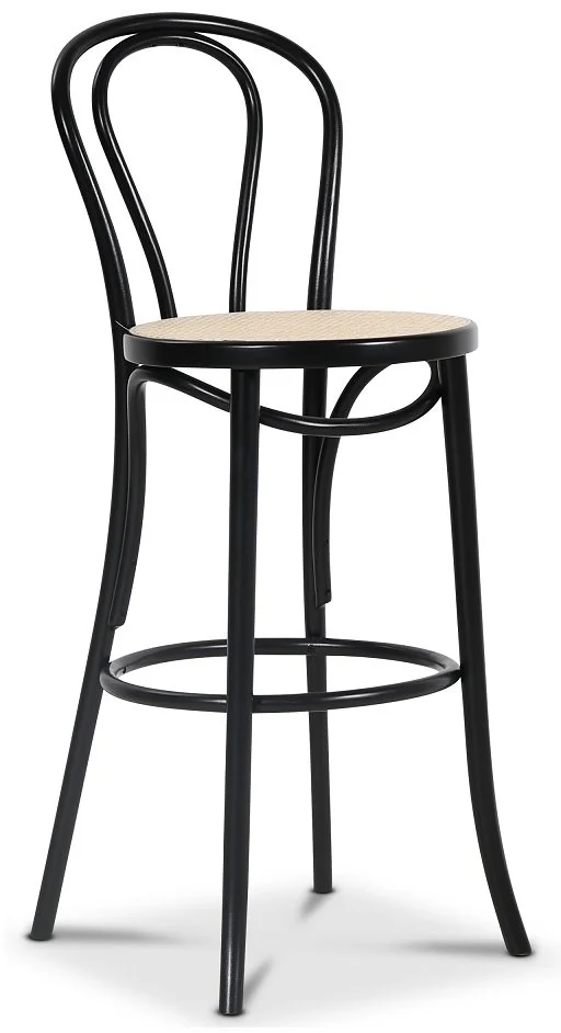 En av de mest klassiska barstolarna i böjträ. Formgiven av Michael Thonet för över 150 år sedan. Stolen har en sits av naturrotting medans stommen är i svartlackat böjträ.