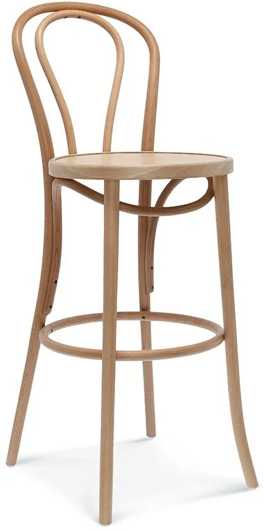 Barstol No18 är formgiven av den kända möbeldesignern Michael Thonet som på 1800-talet formgav en serie av stolar som har blivit riktiga klassiker. Barstol No18 är tillverkad av massivt formpressade och manuellt böjda bokstänger. Med sitt fantastiska formspråk och sin tidlöshet smälter den in i de flesta sammanhang.