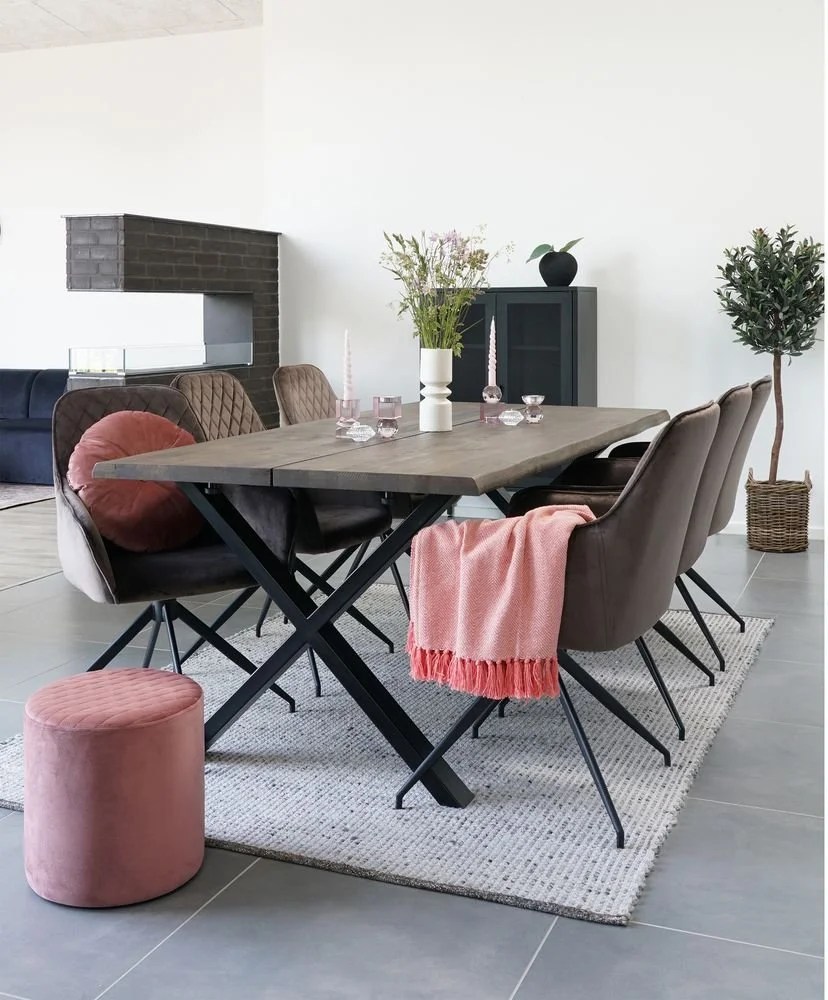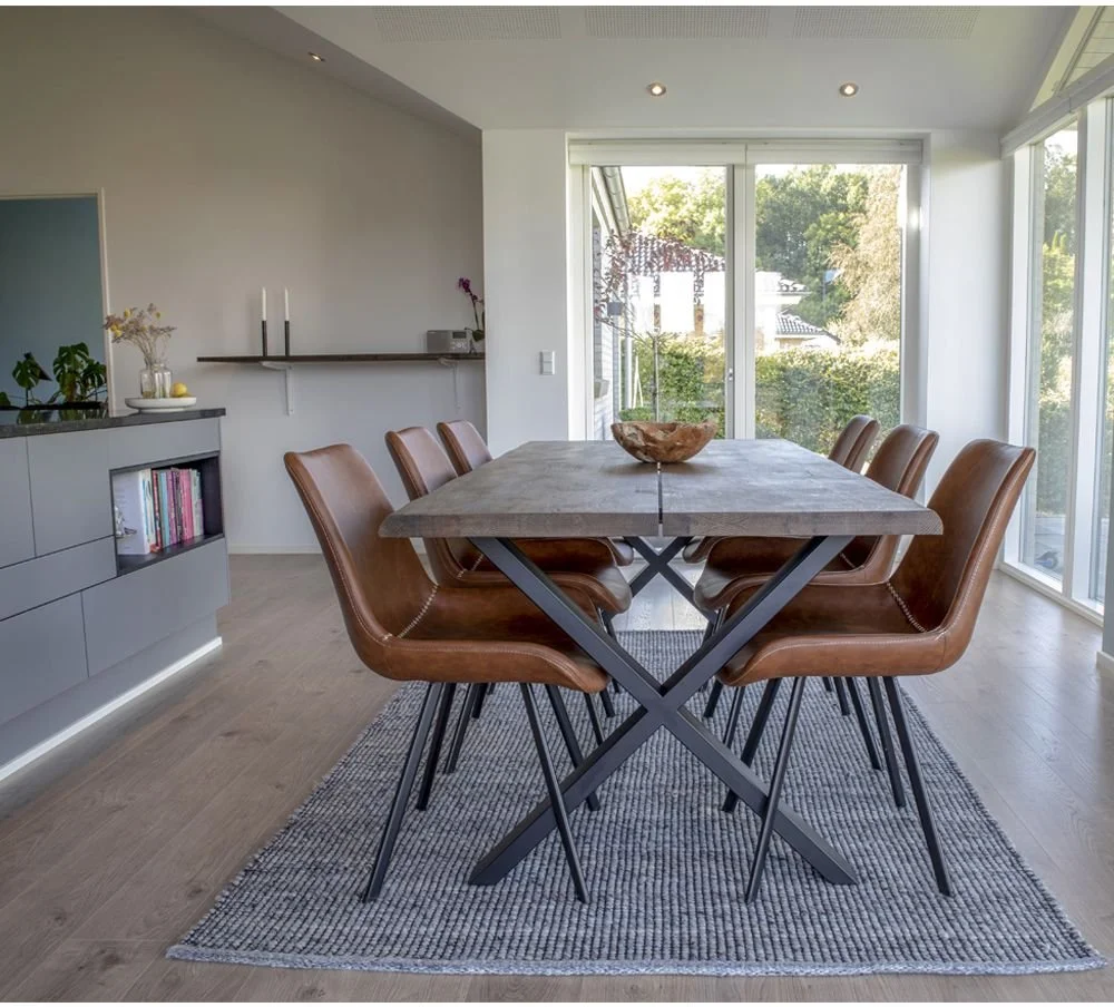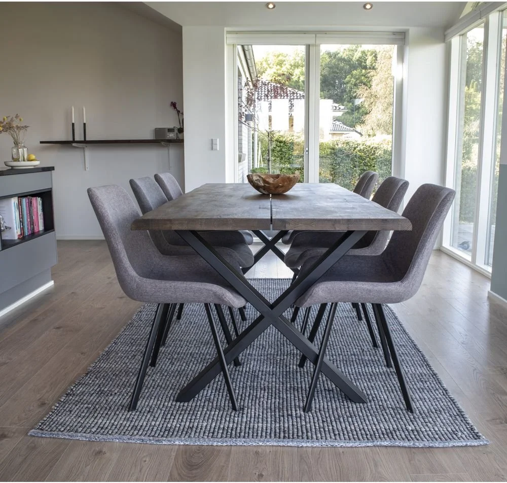 Matbord i rök-oljad ek. Möjlighet att förlänga med tilläggningsskivor.