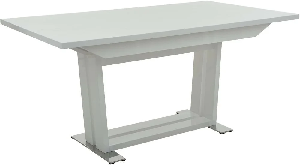 Fräckt matbord i vit högglans av MDF/spånskiva, centrerat underrede.
