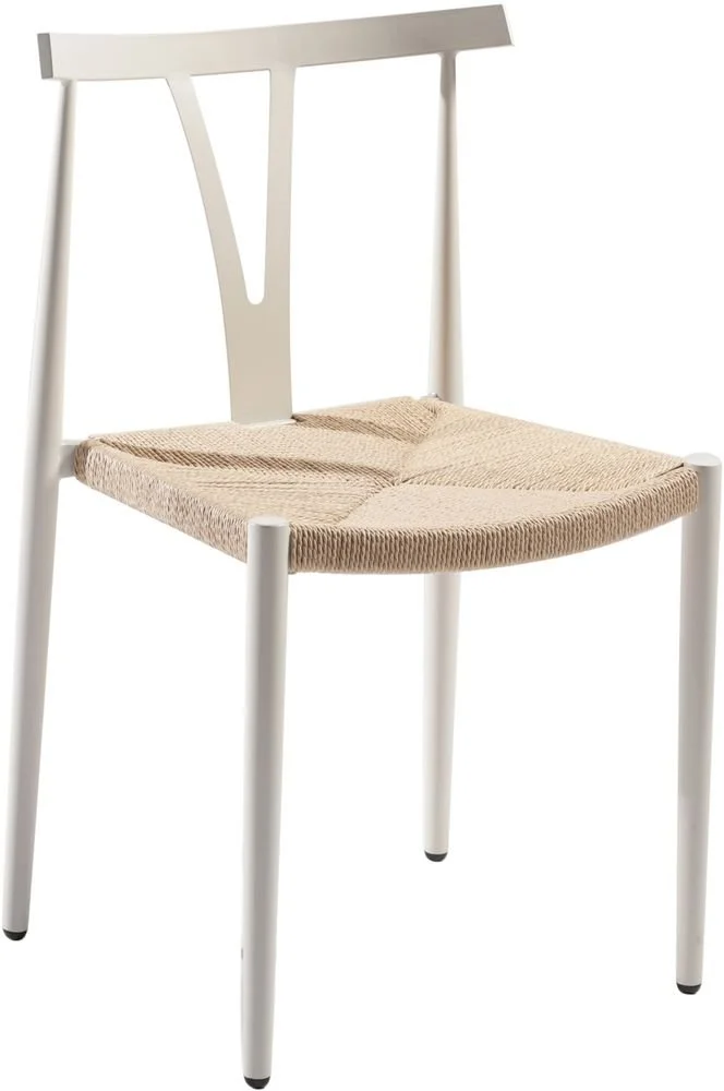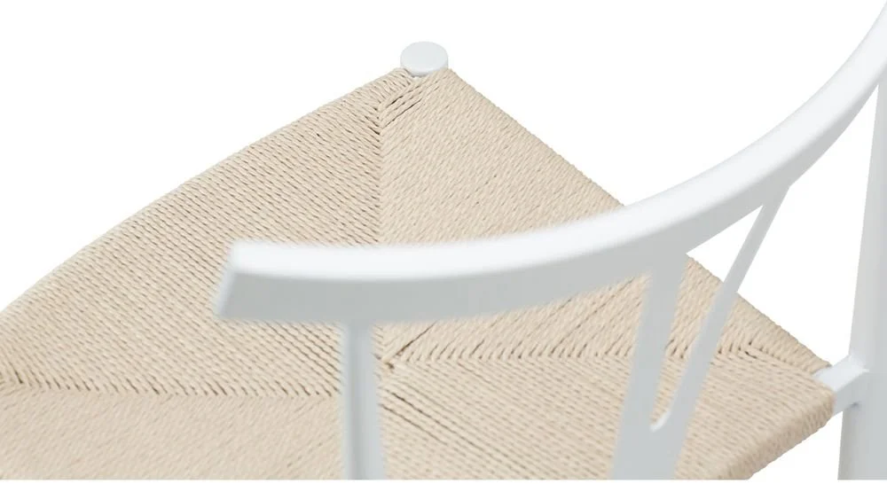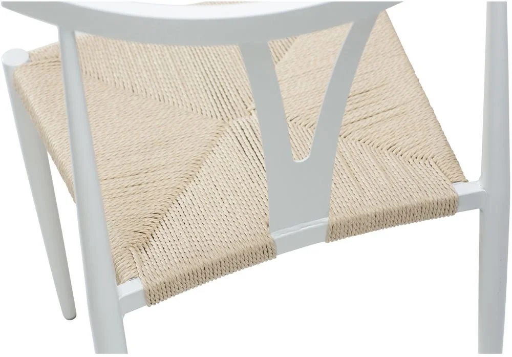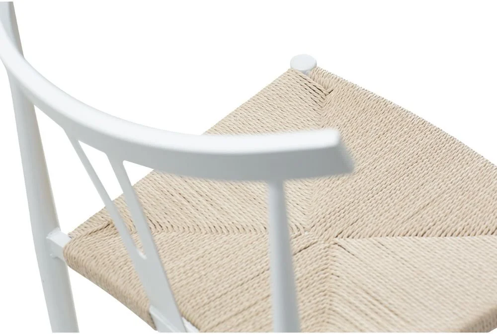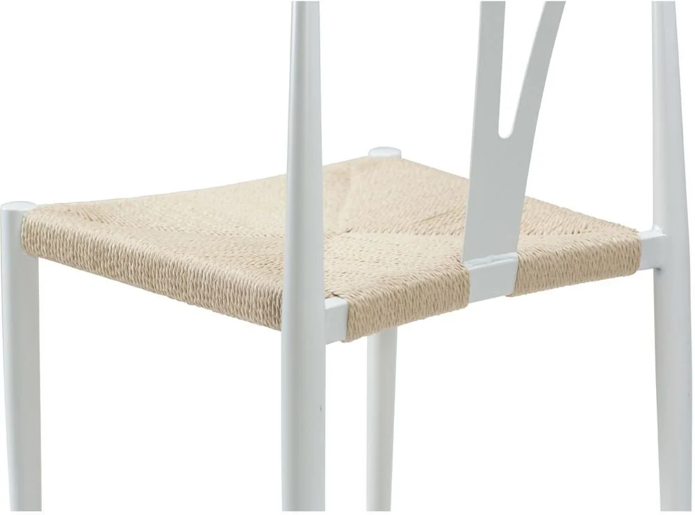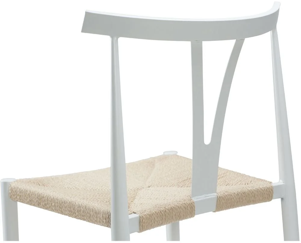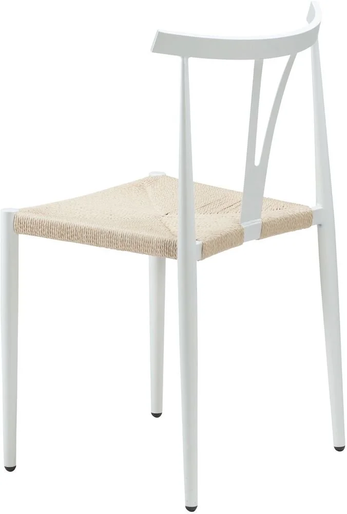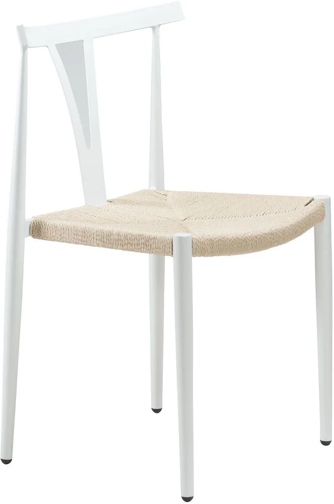 Stilig stol i modern design. En stol som sticker ut från mängden och sätter prägel på ditt möblemang. Vitlackad med sits i rotting, en kombination av klass. Runda ben för en nätt design som passar med stolens överdel.