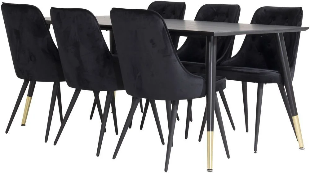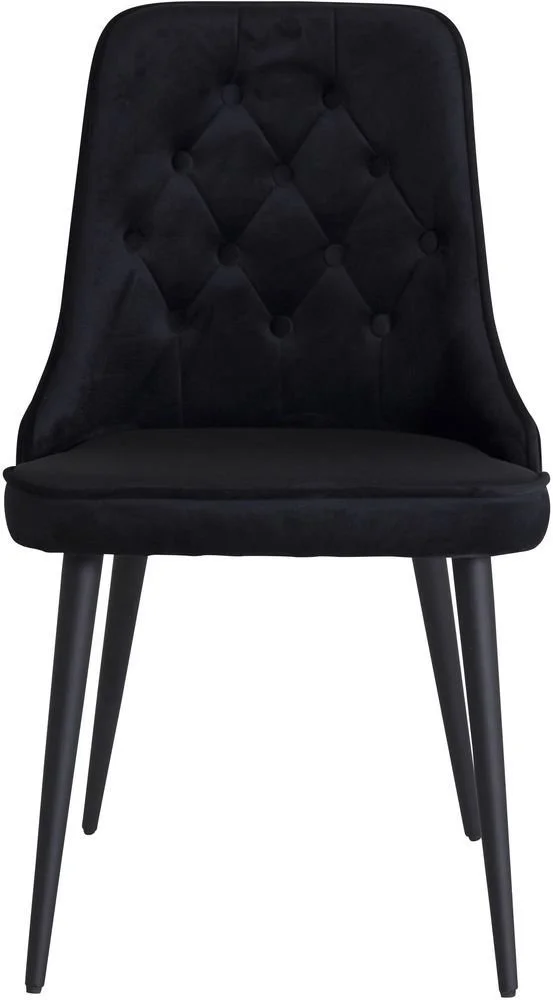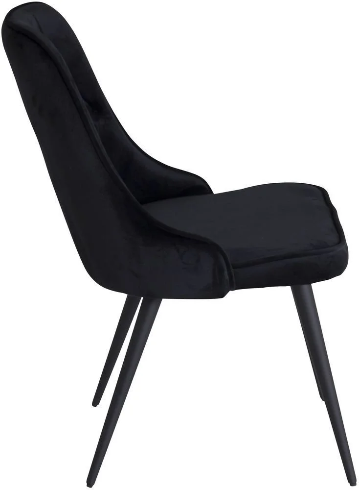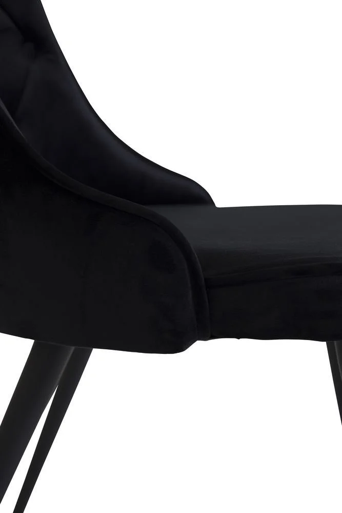Modern stol i svart sammet, 100% polyester. Sitsen är skumstoppad.