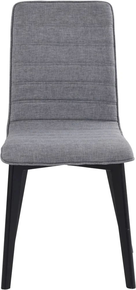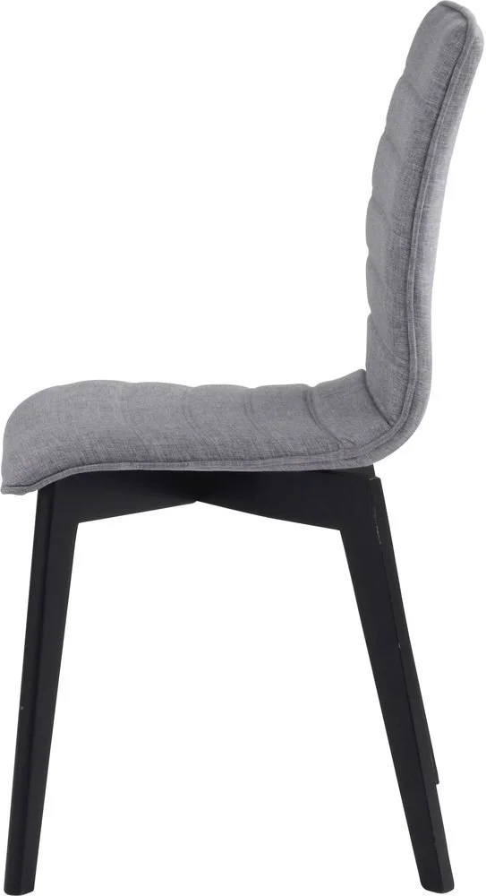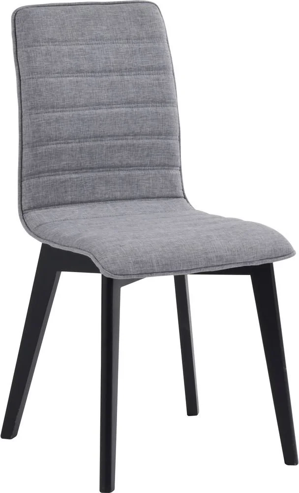 Stol från Skånska Möbelhuset i massiv svartbetsad ek, sits klädd med ljusgrått tyg.