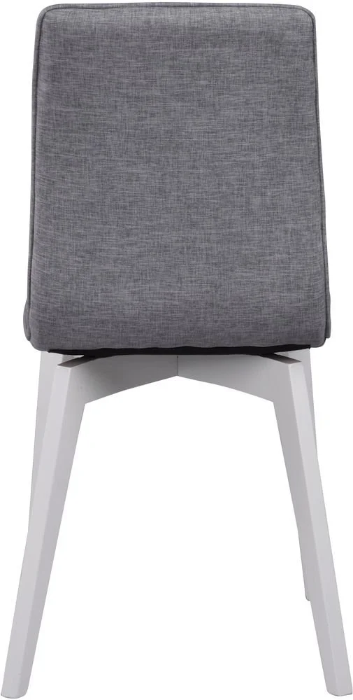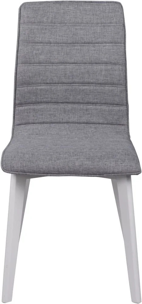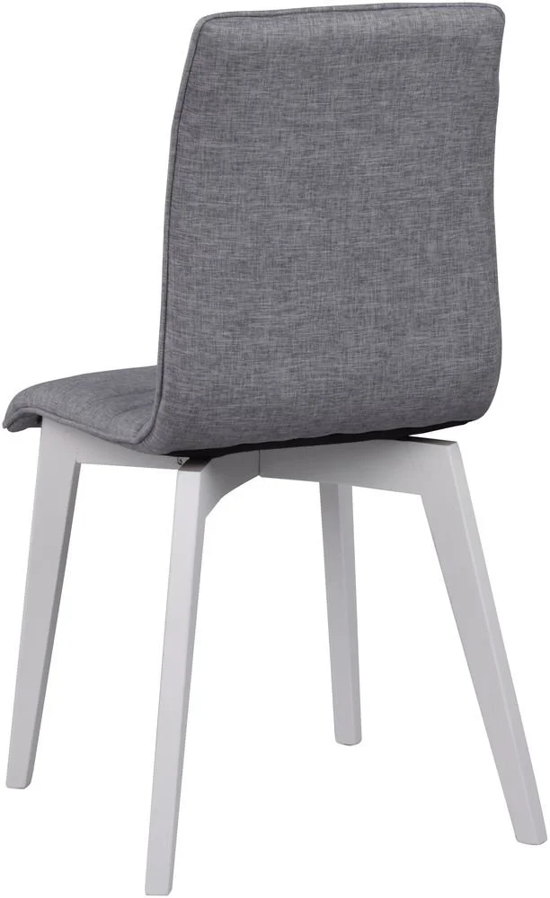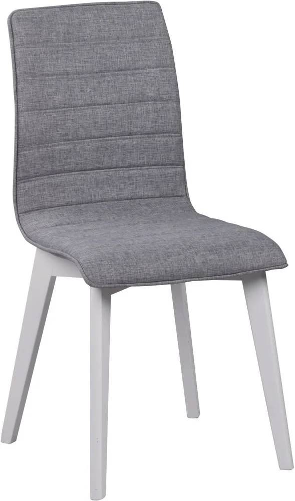 Stol från Skånska Möbelhuset i massiv vitlackerad björk, sits klädd med ljusgrått tyg.