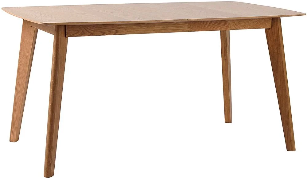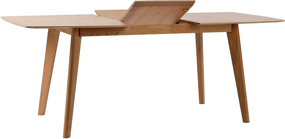 Arianna matbord har en stilren form med en smidig iläggsskiva som förvaras under ordinarie bordsskiva, och enkelt kan vecklas upp vid behov. En lättskött fanerad bordsskiva och massiva ben i ek gör bordet till en stabil och lättanvänd möbel. Storlek iläggsskiva 45×90 cm.