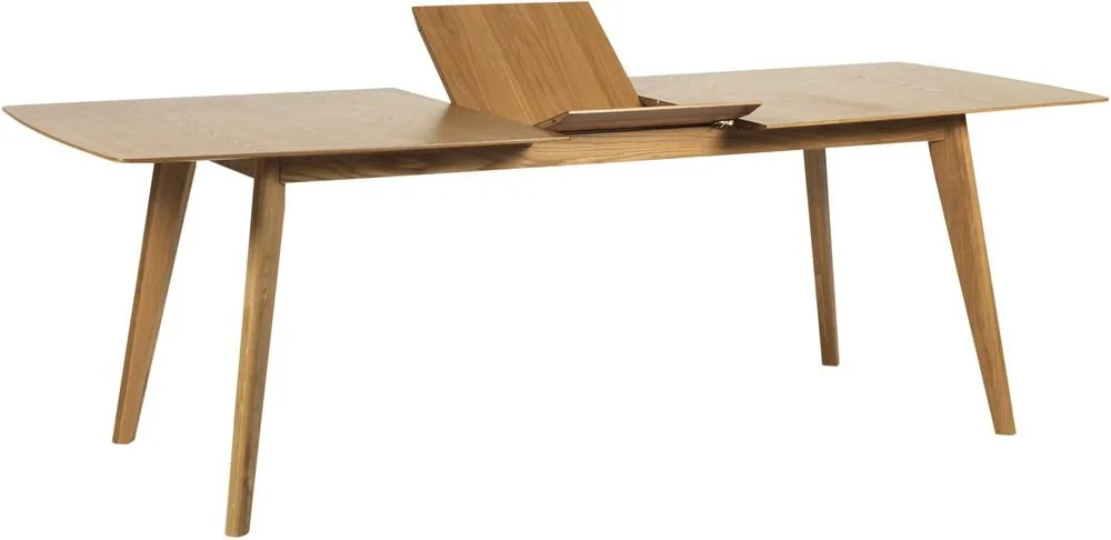 Arianna matbord har en stilren form med en smidig iläggsskiva som förvaras under ordinarie bordsskiva, och enkelt kan vecklas upp vid behov. En lättskött fanerad bordsskiva och massiva ben i ek gör bordet till en stabil och lättanvänd möbel. Storlek iläggsskiva 45×90 cm.