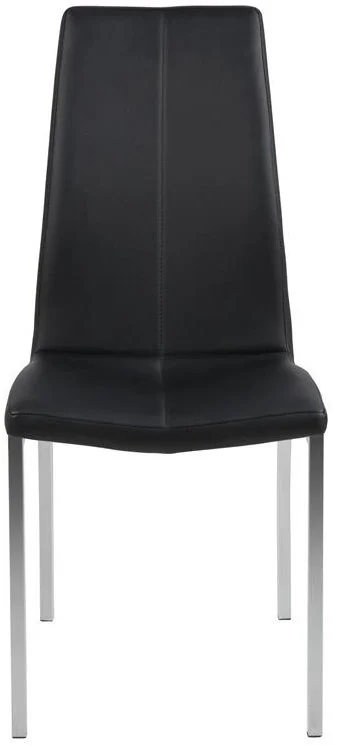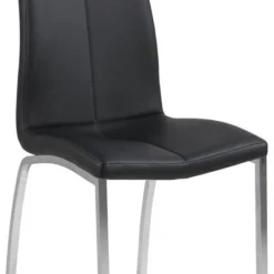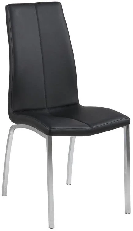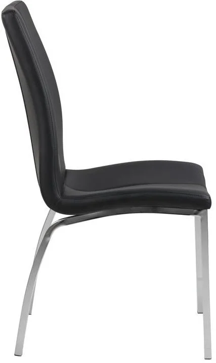 Modern matstol från vår Asama serie, klädd i svart konstläder och med kromade metallben.