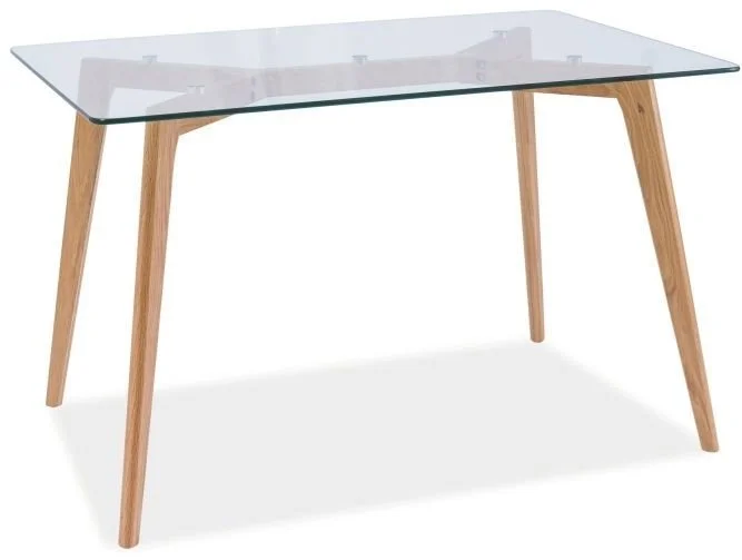 Ett mysigt matbord med en stilren design. Underredet är tillverkat av trä med ek utförande och bordsskivan är av härdat glas.