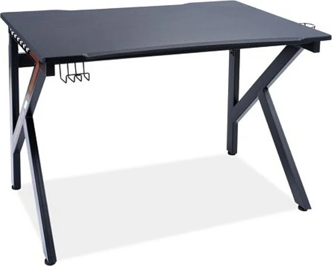Skrivbord av trä och metall.