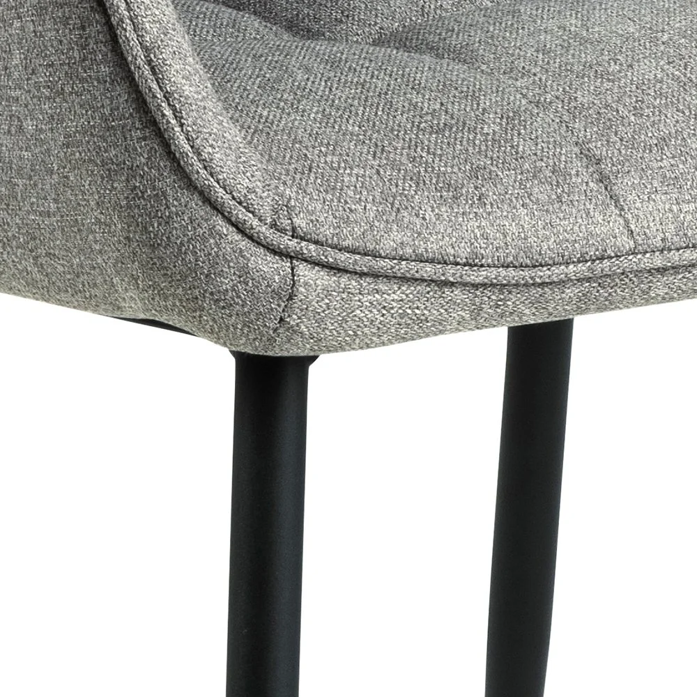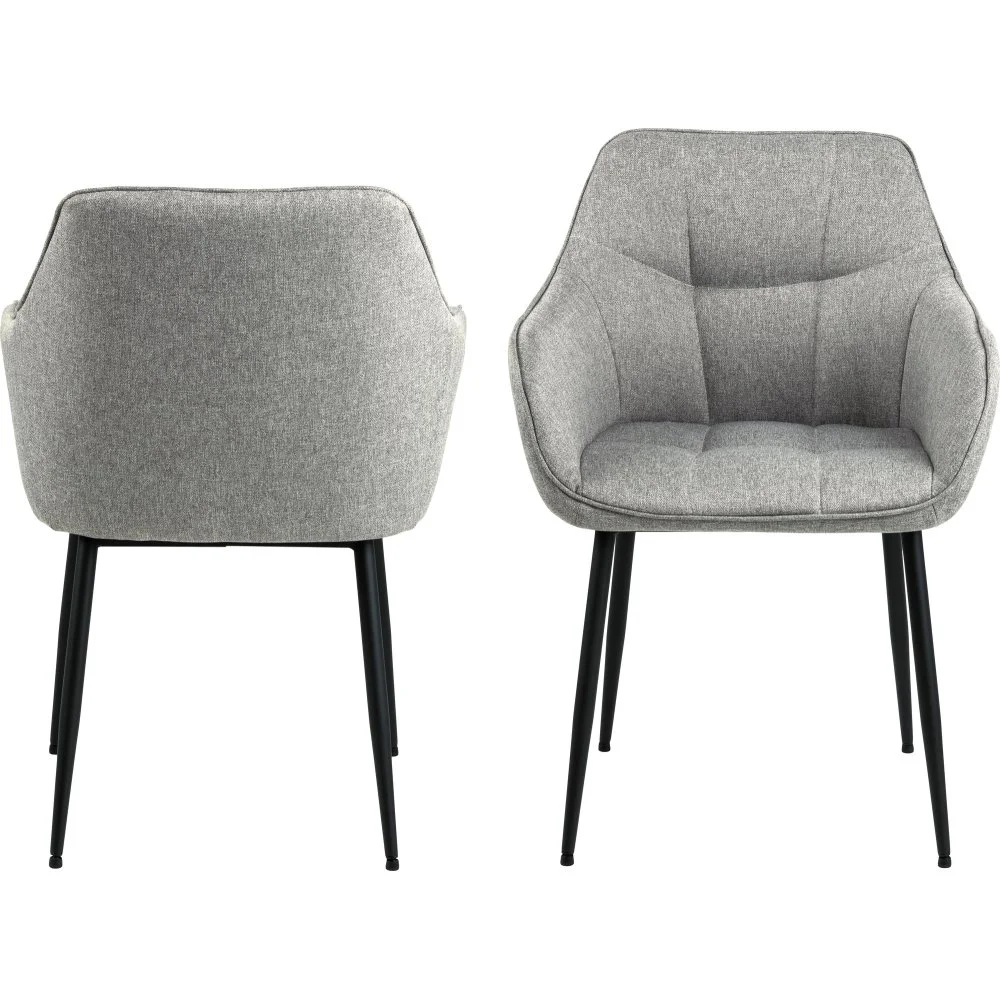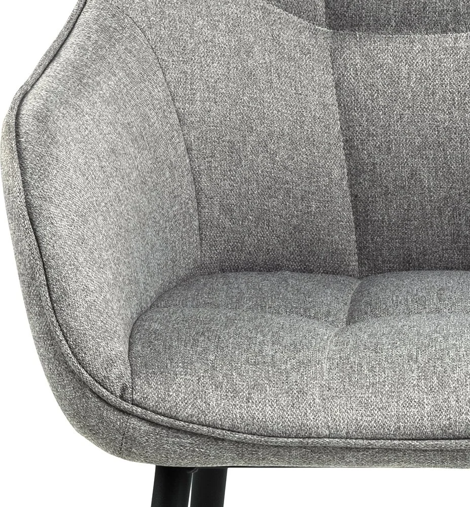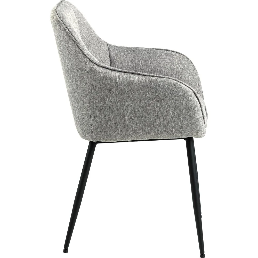 Karmstol med ben av pulverlackerad metall och klädsel av polyester.