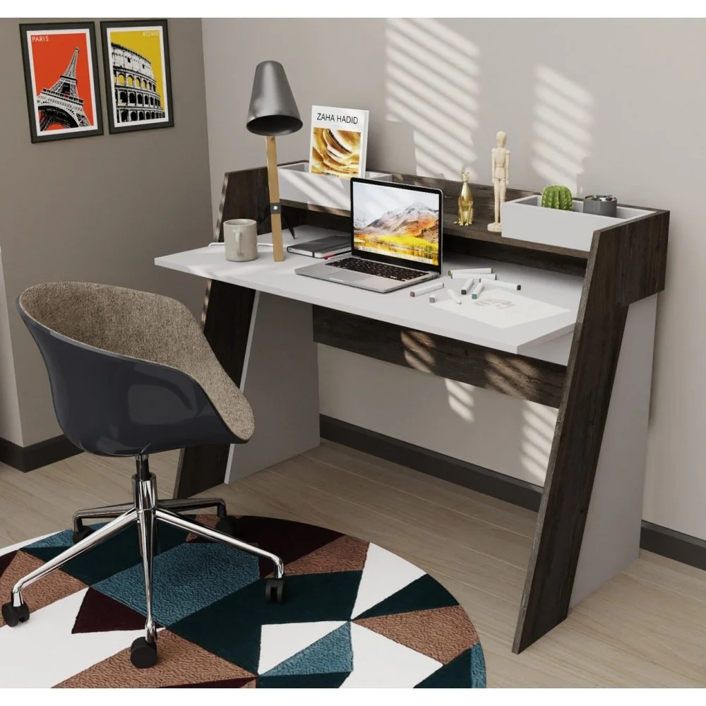 Skrivbord av trä.