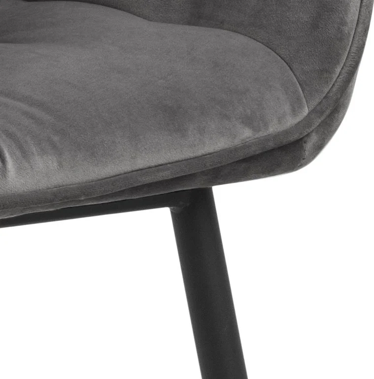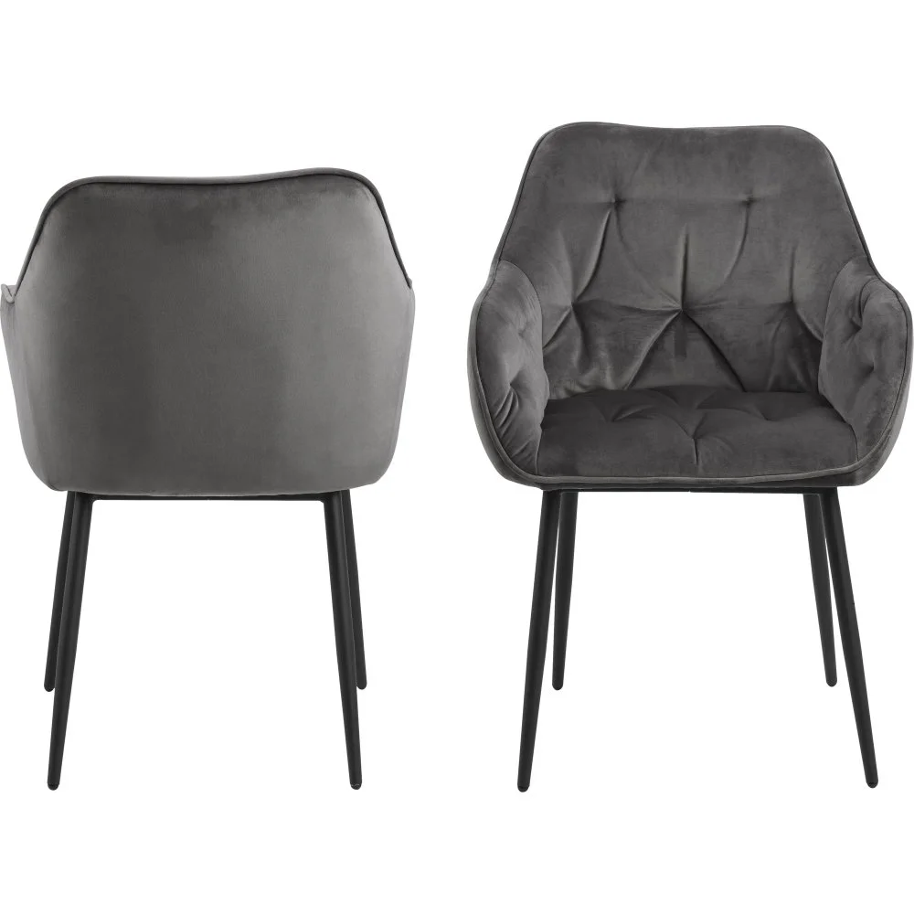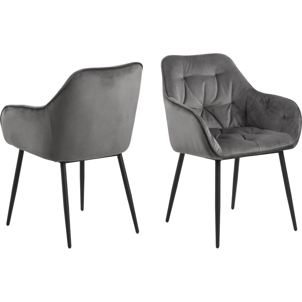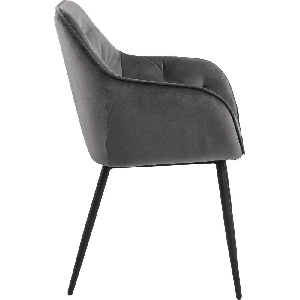 Karmstol med ben av pulverlackerad metall och klädsel av polyester.