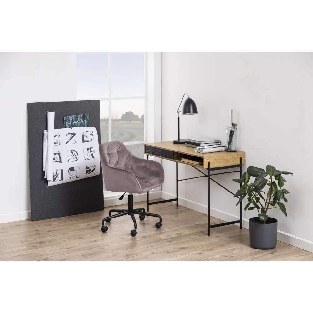 Kontorsstol med ben av pulverlackerad metall och klädsel av polyester.