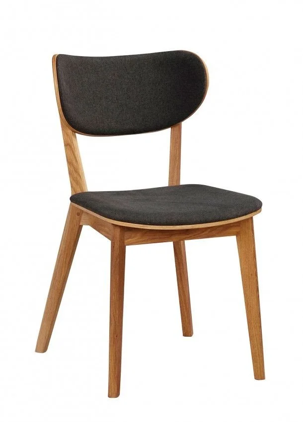 Camila stol i oljad ek med sits i mörkgrått tyg.