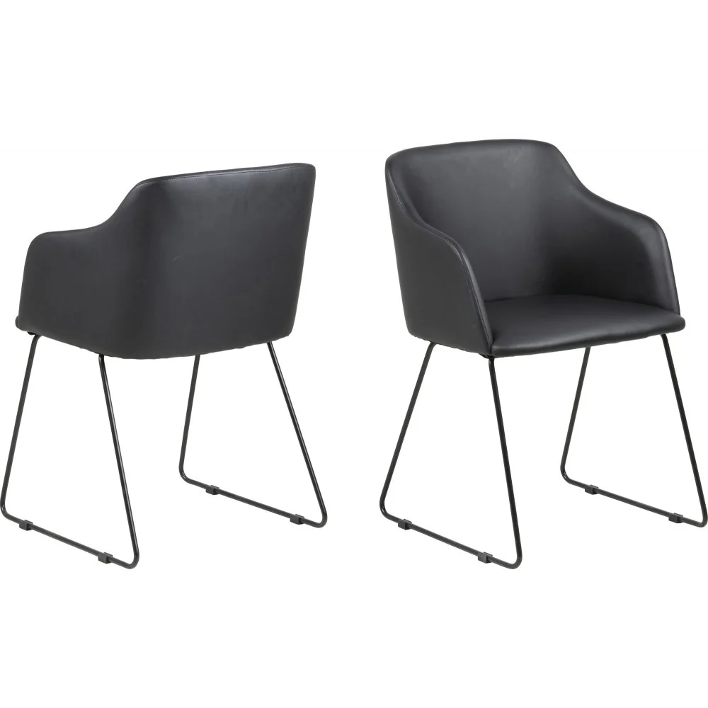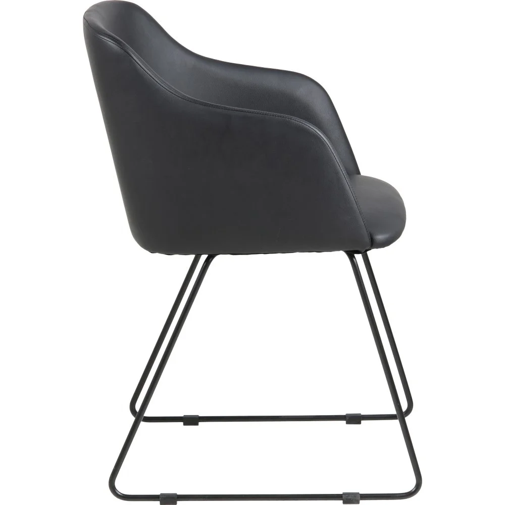 Karmstol med ben av pulverlackerad metall och klädsel av PU-läder.
