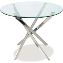 Ett snyggt matbord med en modern design. Underredet är tillverkat av kromad metall och bordsskivan är av mycket hållbart härdat glas.