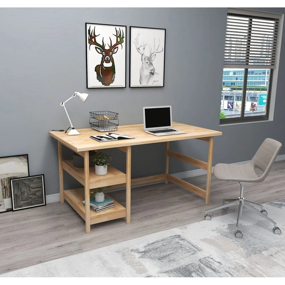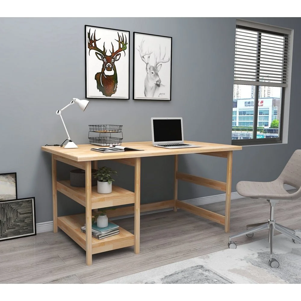 Skrivbord av furuträ.