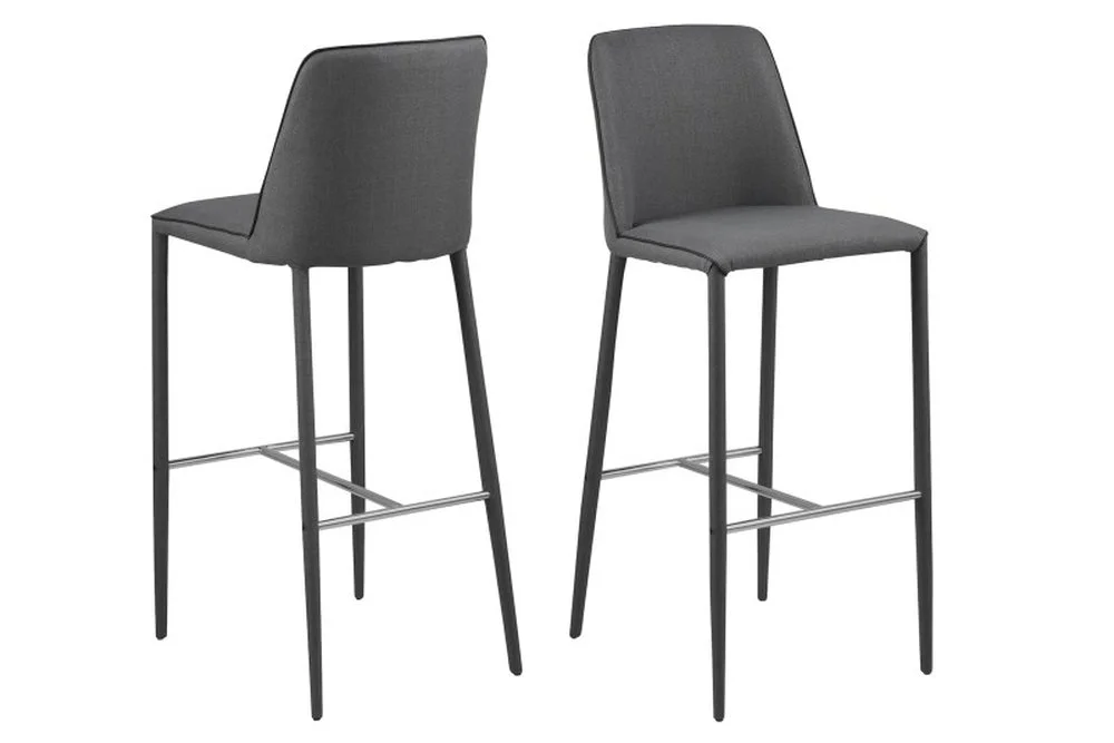 Cleveland barstol är bekväm med en modern design. Ramen är klädd i mörkgrått tyg och benen är färgade i grå metall med fotstöd.