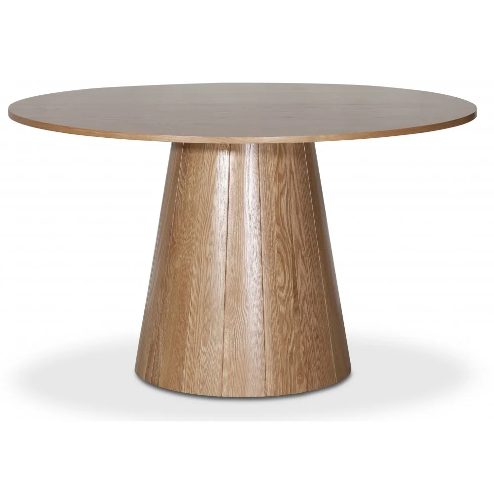 Cone är ett modernt matbord som finns i valfri färg och storlek (se möbelserie Cone), välj det bord som passar in i ditt hem. Underredet är cylinderformat av ek och ger en stabil grund för toppskivan, som är tillverkad av fanerad plywood. Detta bord är i utförande whitewash. Ett enkelt men praktiskt bord. Kombinera gärna med stolen Sara.