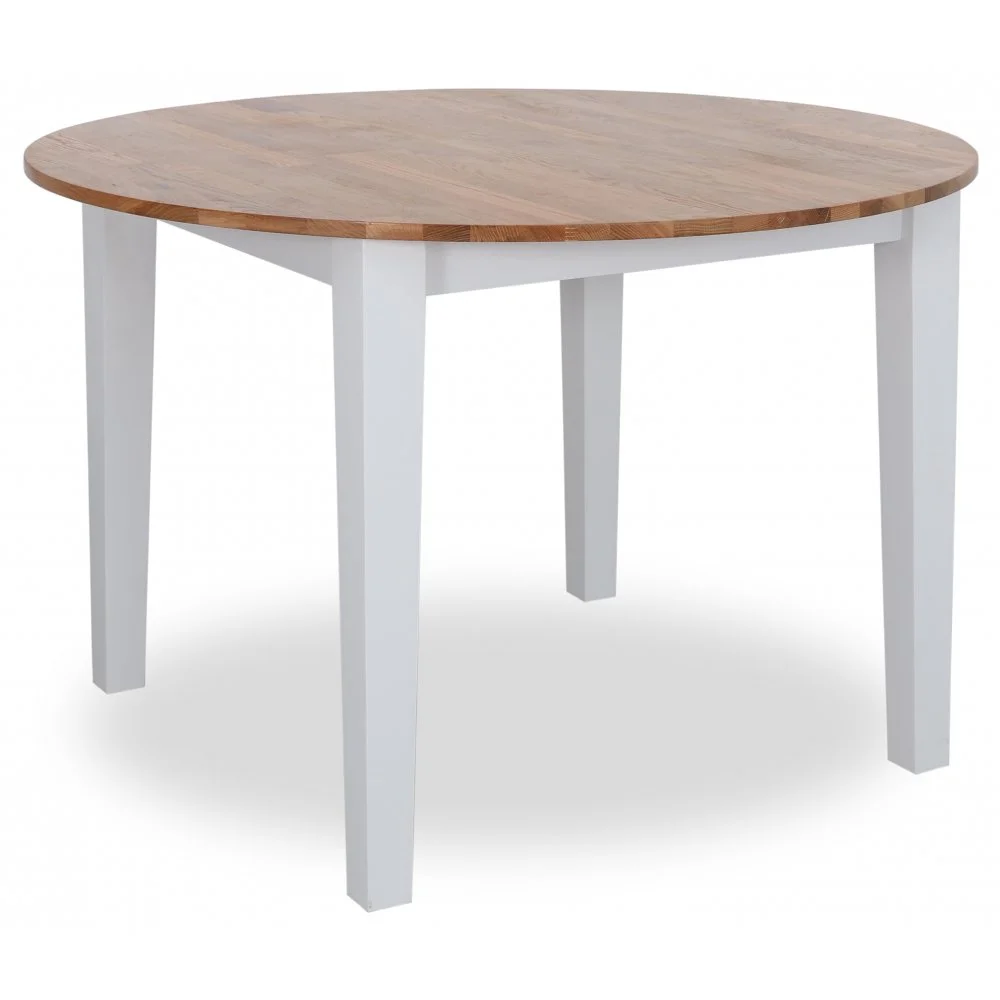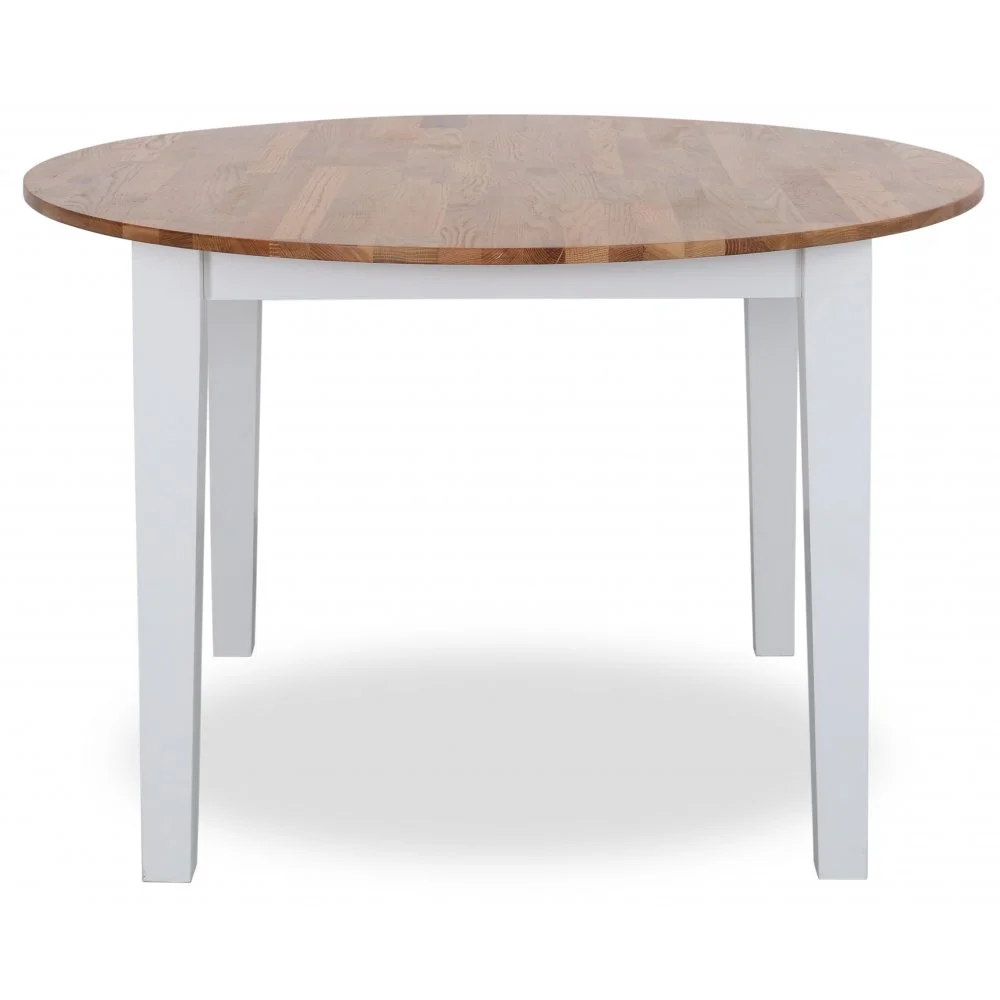 Dalarö runt matbord är ett idealiskt matbord för det lilla sällskapet. Den runda formen ger middagen en trivsam och intim atmosfär. Vitlackat underrede med en bordsskiva i massiv oljad ek.