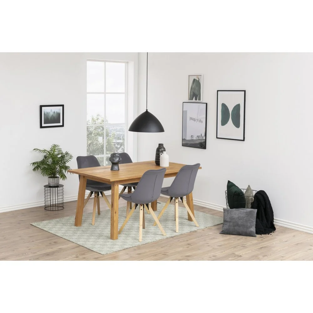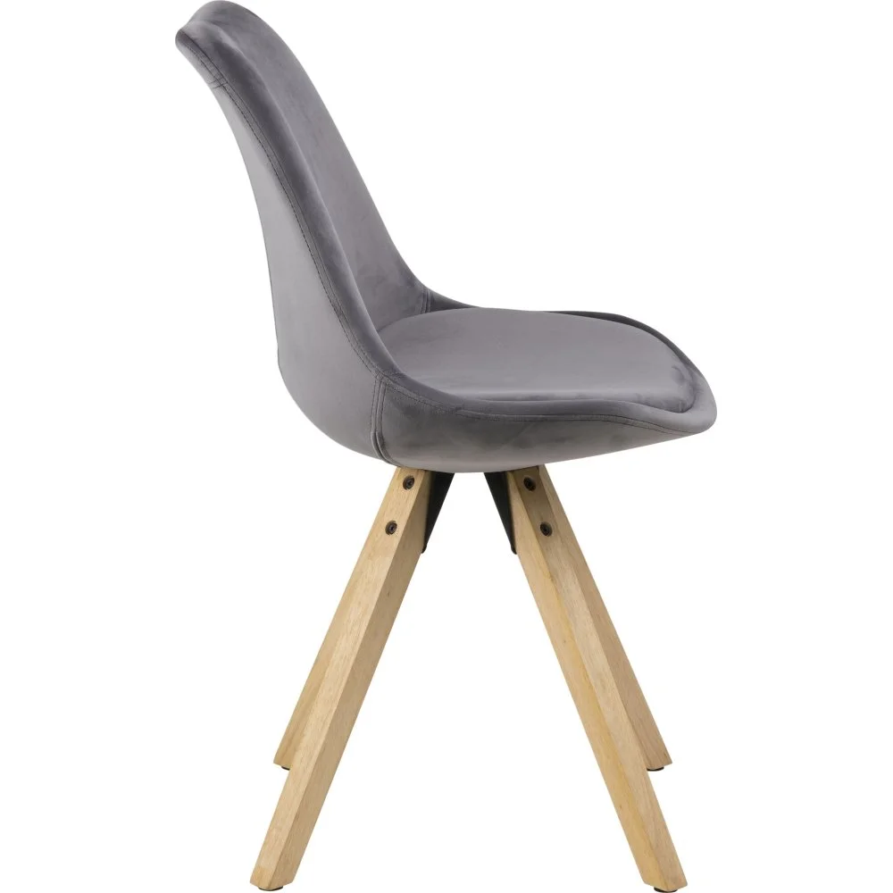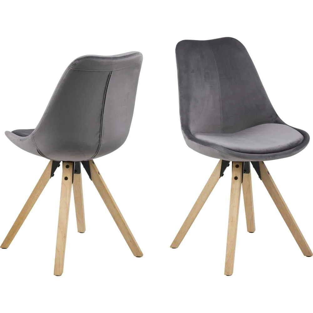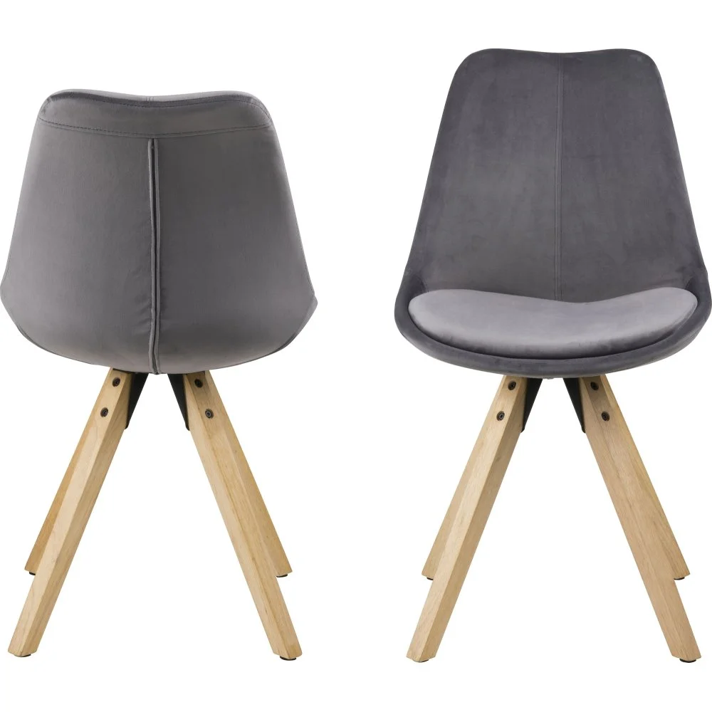 Matstol med ben av lackerad gummiträ och klädsel av polyester.