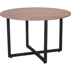 Matbord med inbjudande, runda former och en klassisk design som står sig över tid. Bordet har en valnötsfärgad bordsskiva i MDF och raka bordsben i svart stål. Matcha med ett par läckra matstolar så får du en komplett matgrupp till hemmets hjärta där ingen hamnar på kanten.
