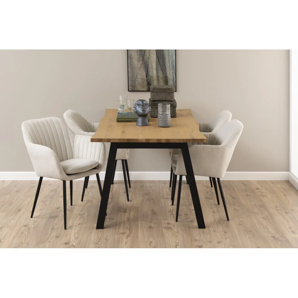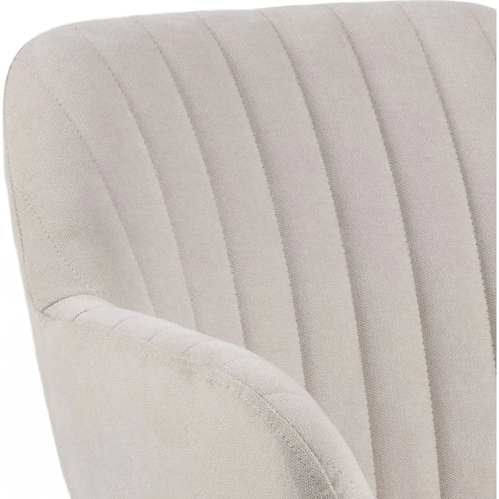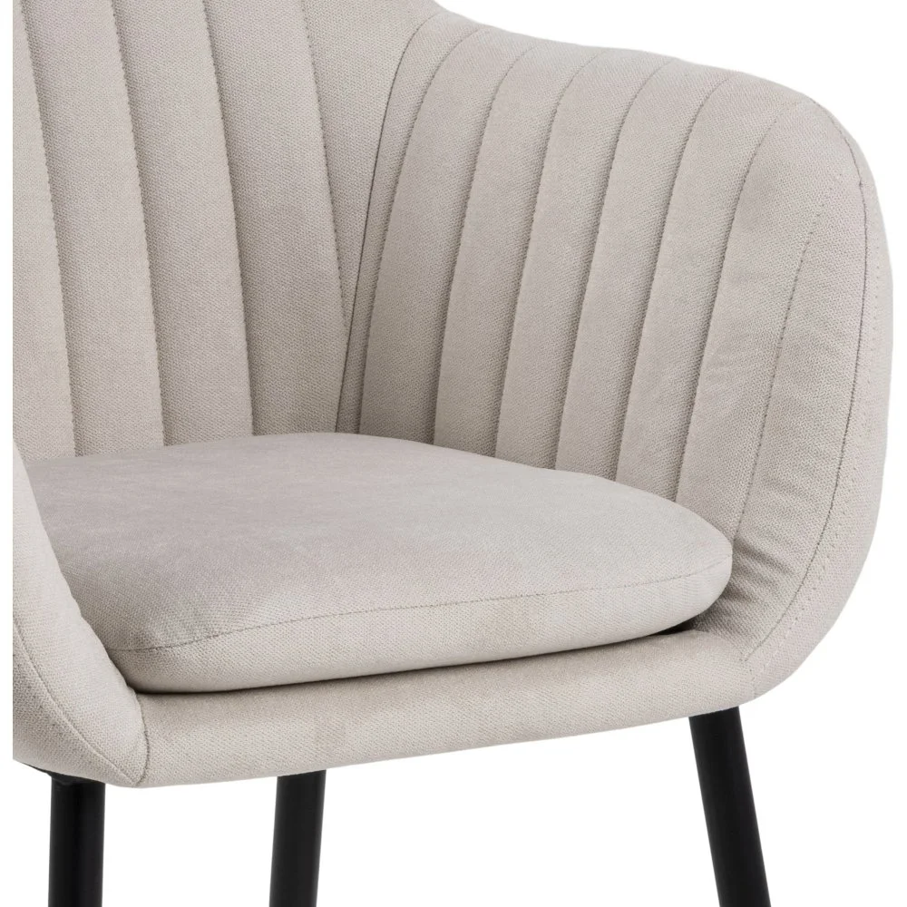 Karmstol med ben av pulverlackerad metall och klädsel av polyester och nylon.