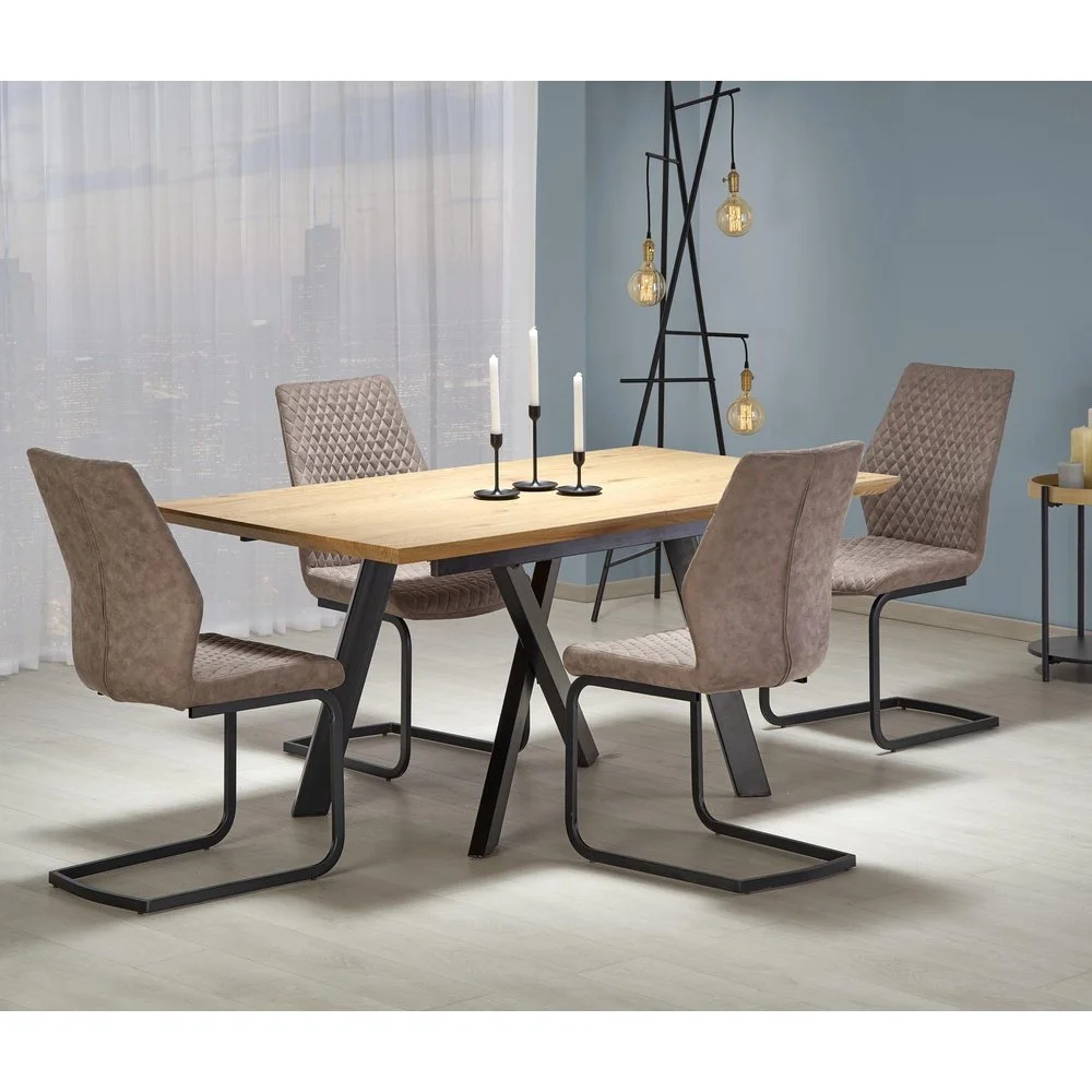 Ett härligt matbord med en modern design. Bordsskivan är tillverkad av laminerad MFP (premium träskiva) och underredet är av pulverlackerad metall. Bordet är praktiskt då bordsskivan lätt kan förlängas upp till 200 cm, tilläggsskiva ingår.