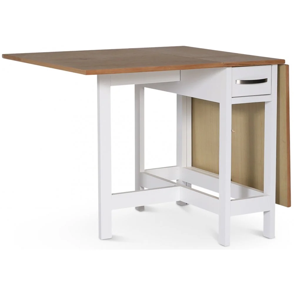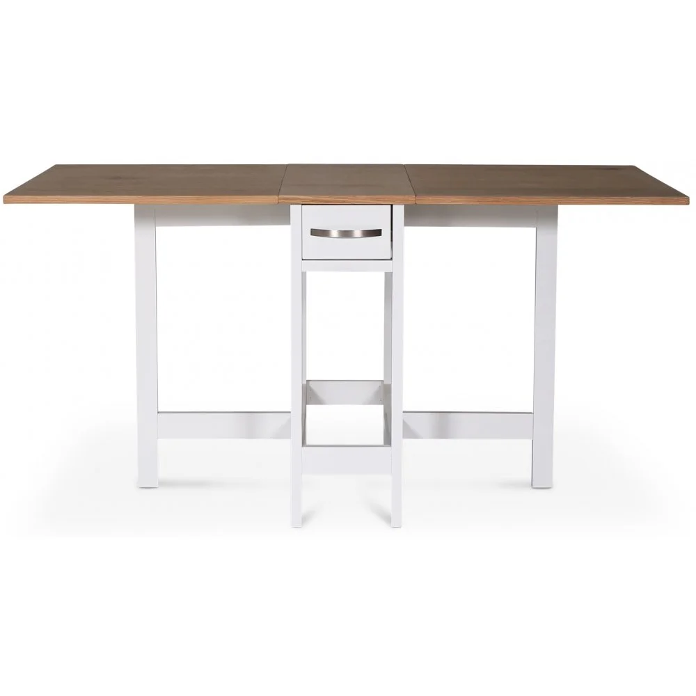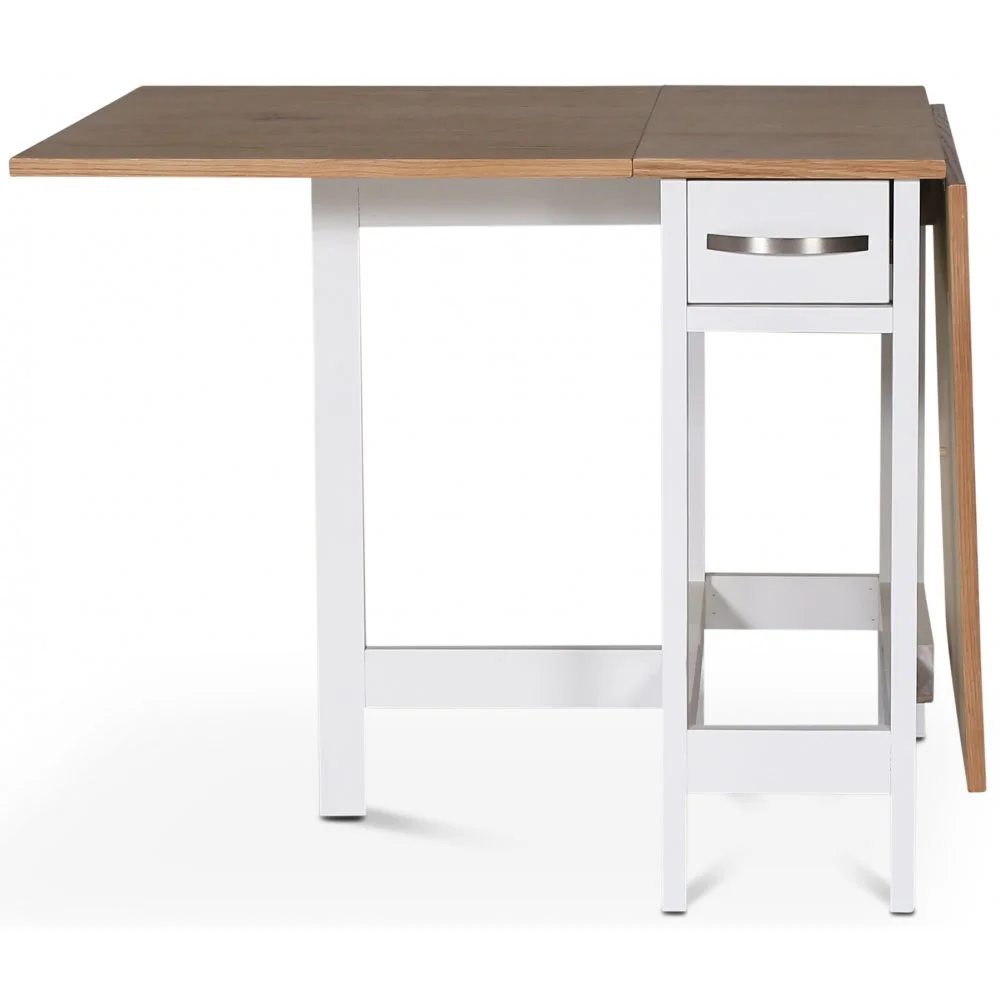 Fårö slagbord med vitt underrede och toppskiva av ekfanér. Tillverkat av massivt trä, fanér och MDF. Ett stilrent och praktiskt bord, som även har två utdragbara lådor (en på varje sida av bordet). Ett slagbord får plats i den minsta vrå i nedfällt läge medans ett fullt uppfällt slagbord rymmer hela familjen runt bordet.