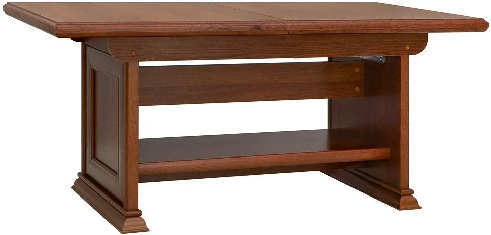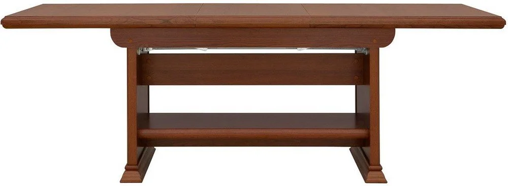 Ett fint matbord i kastanj. Bordet är mycket funktionellt då det både kan höjas och förlängas efter just dina behov. Undertill finns en praktisk hylla som hjälper till att hålla ordning uppe på matbordet.