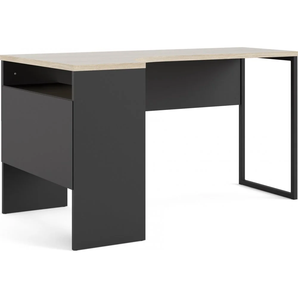 Skrivbord av trä med kantband av ABS-plast och ben av stål.