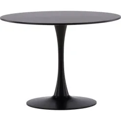 Matbord med en stilren skandinavisk design med en läcker trumpetfot i svart stål och en svart bordsskiva i MDF. Det slitstarka materialet ger dig ett hållbart matbord som är enkelt att underhålla. Matcha med ett par läckra matstolar så får du en komplett matgrupp att samla nära och kära kring.