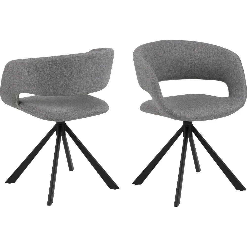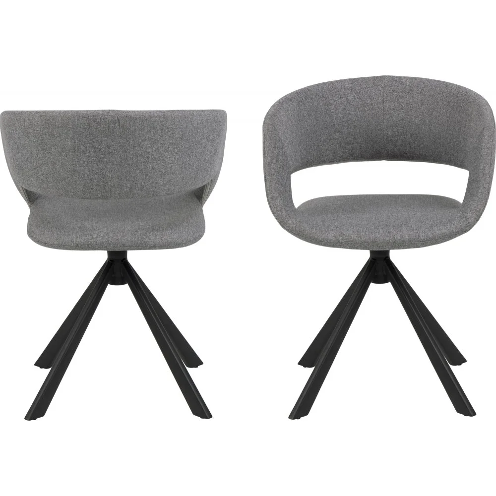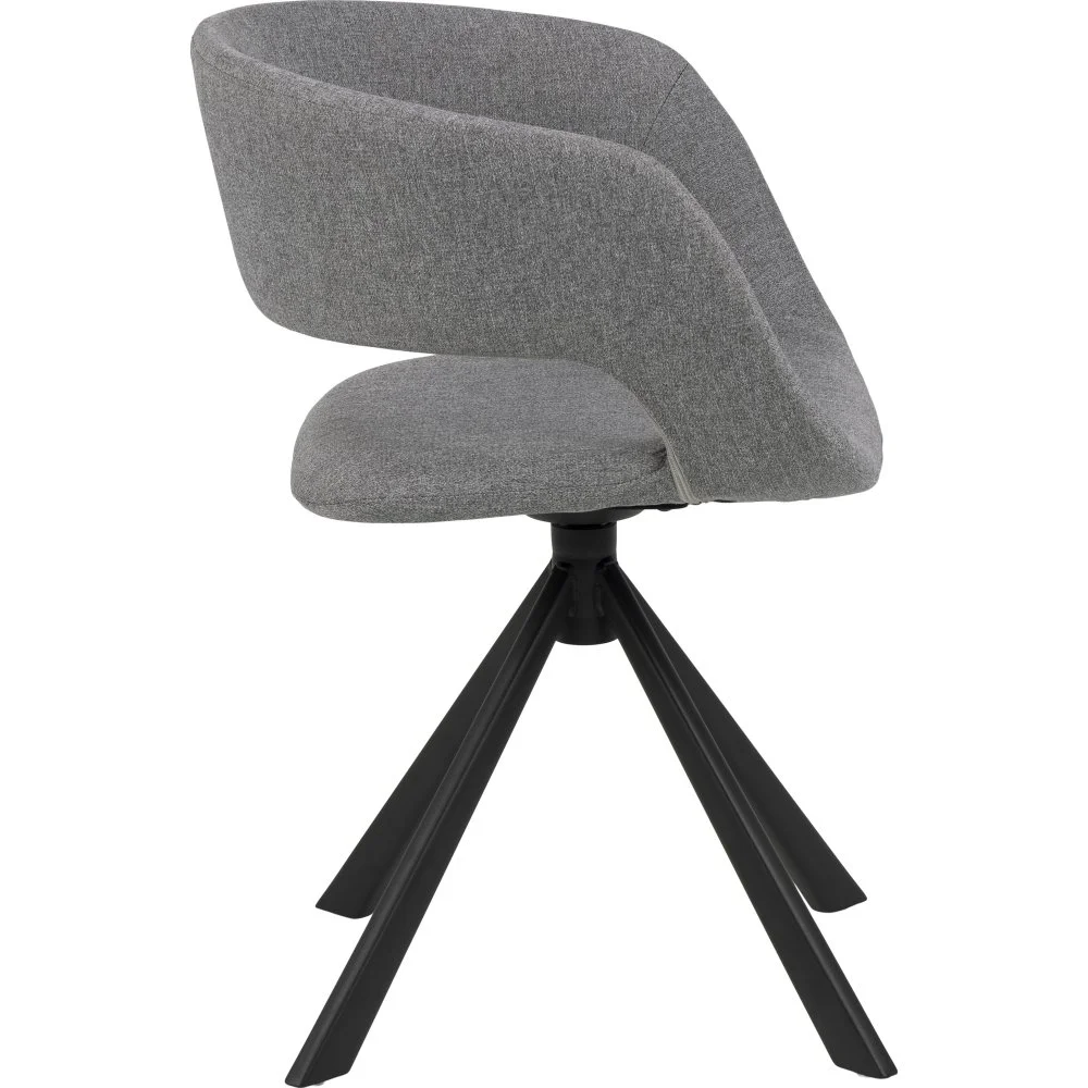 Karmstol med ben av pulverlackerad metall och klädsel av polyester.