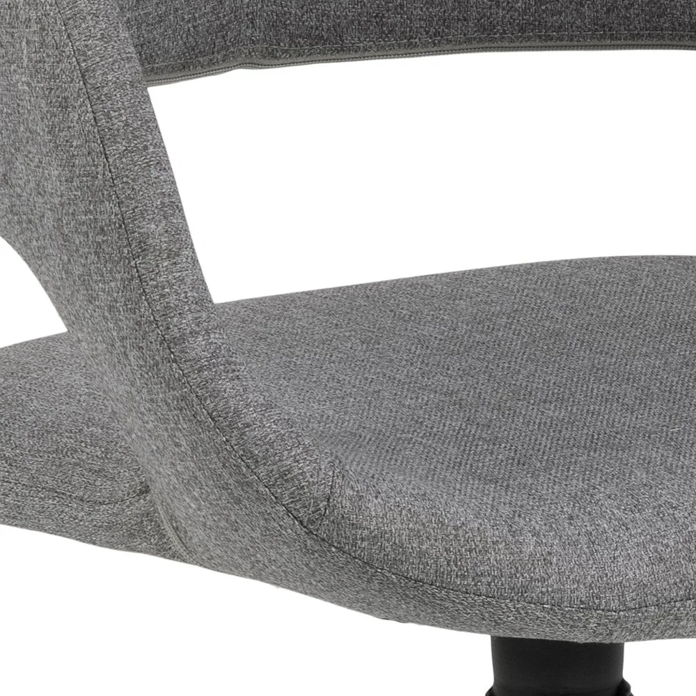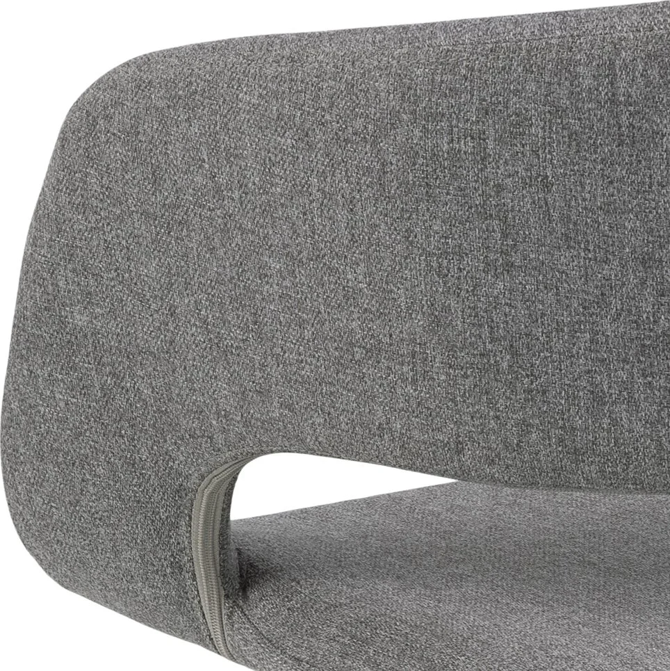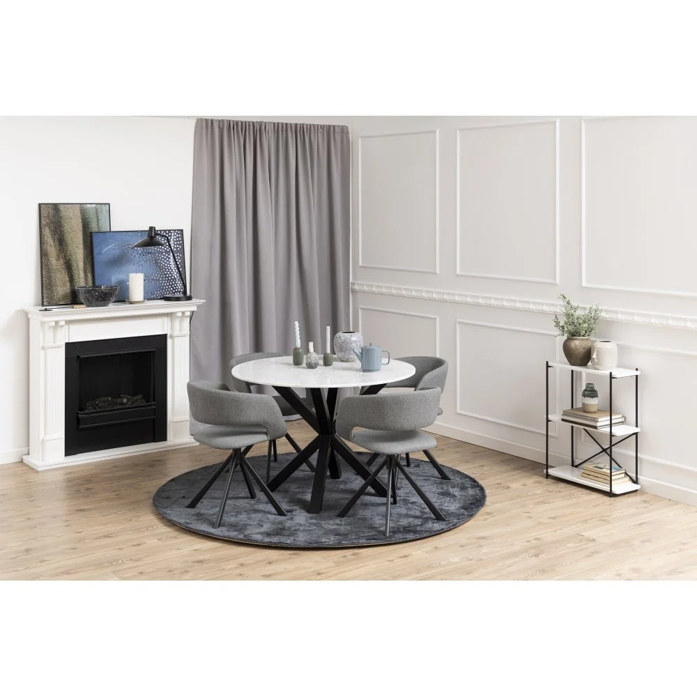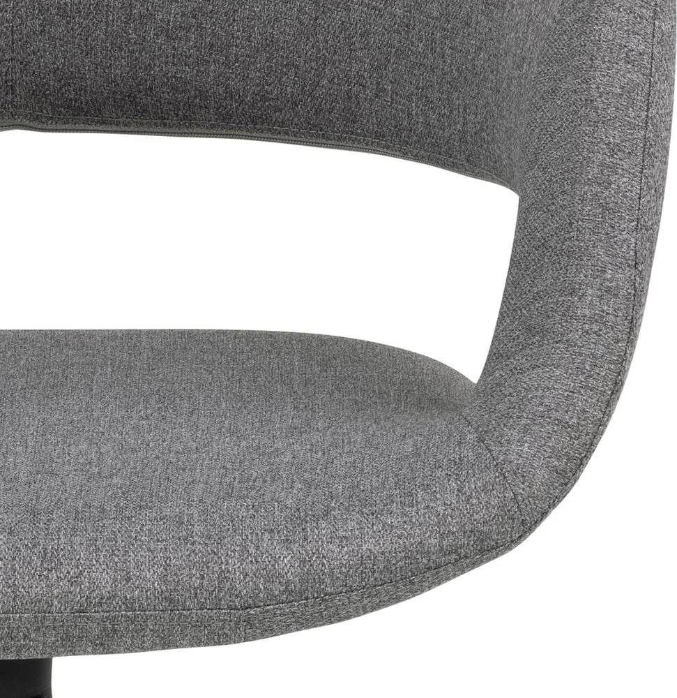 Karmstol med ben av pulverlackerad metall och klädsel av polyester.