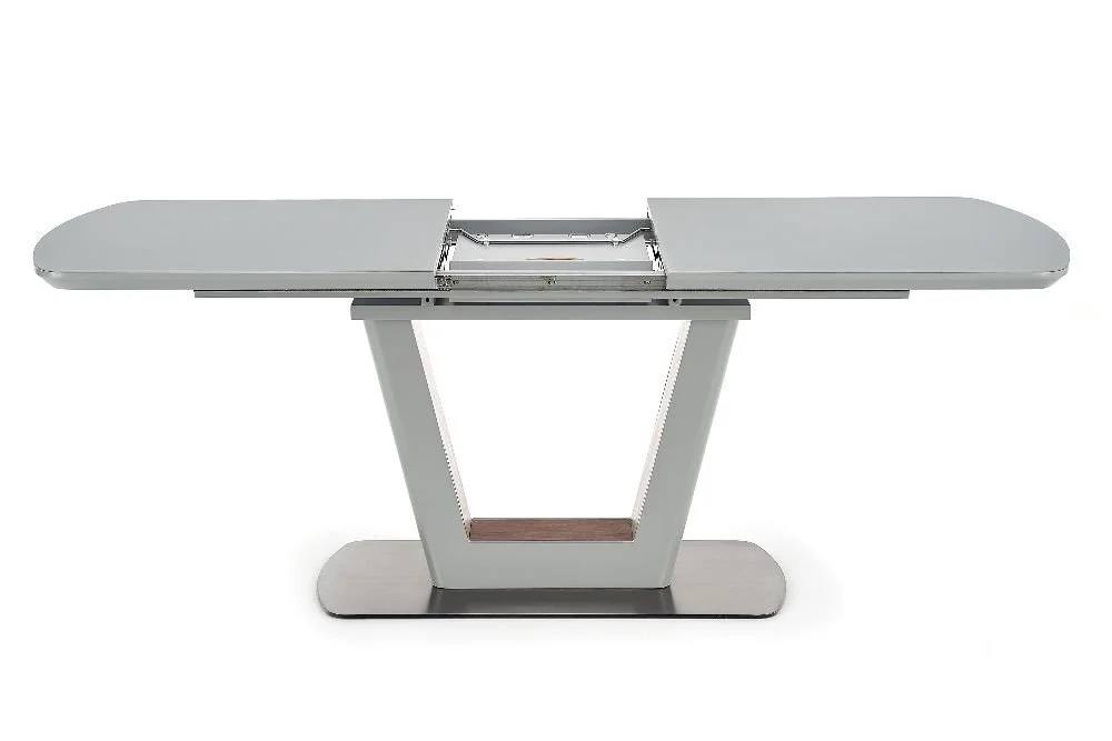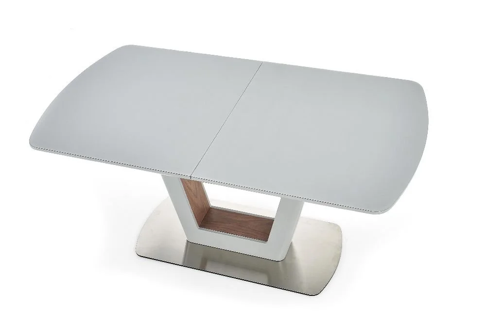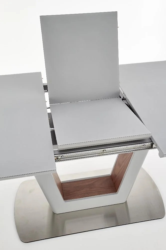 Ett snyggt matbord med en modern design. Bordsskivan är tillverkad av lackerad MFP (premium träskiva) och underredet är av en vacker blandning av lackerad MFP (premium träskiva), fanér och rostfritt stål. Bordet är praktiskt då du lätt kan förlänga bordsskivan upp till 200 cm, tilläggsskiva ingår.
