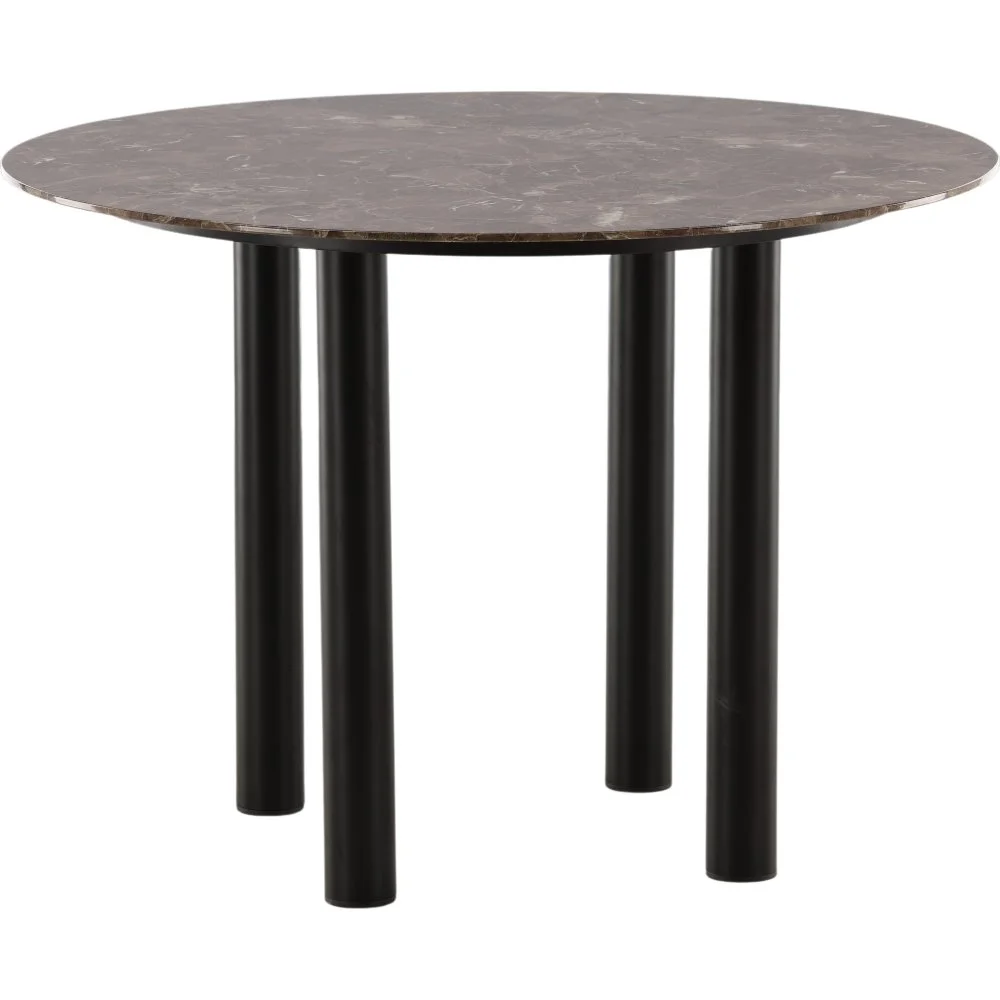 Matbord som drar blickarna till sig och imponerar med sin smakfulla design. Matbordet har en rund bordsskiva i brun marmor som ger ett spräckligt liv till möbeln. Bordsbenen är cylinderformade i svart metall. Ett runt matbord passar perfekt för att skapa gemenskap vid måltiderna, här hamnar ingen på kanten. Inred ditt hem med en schysst marmordetalj och märk hur stilnivån ökar.