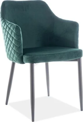 Matstol i metall. Klädd med polyester i sammetsimitation.