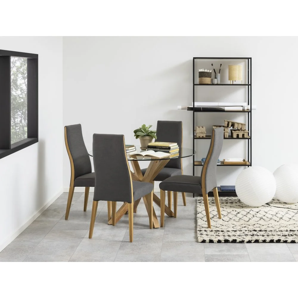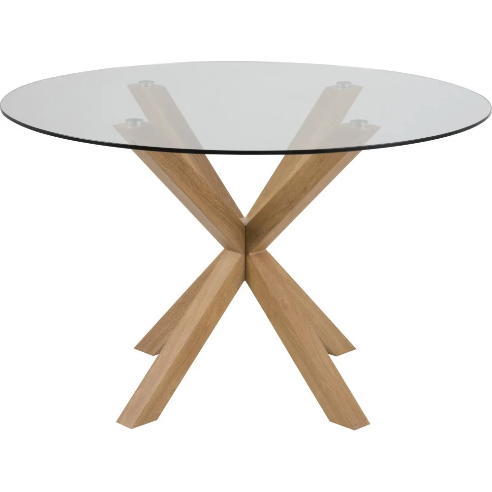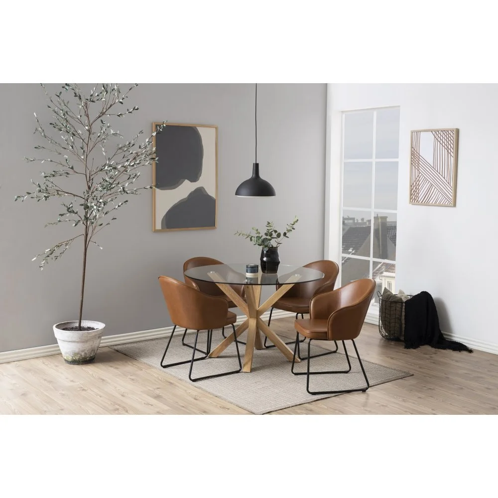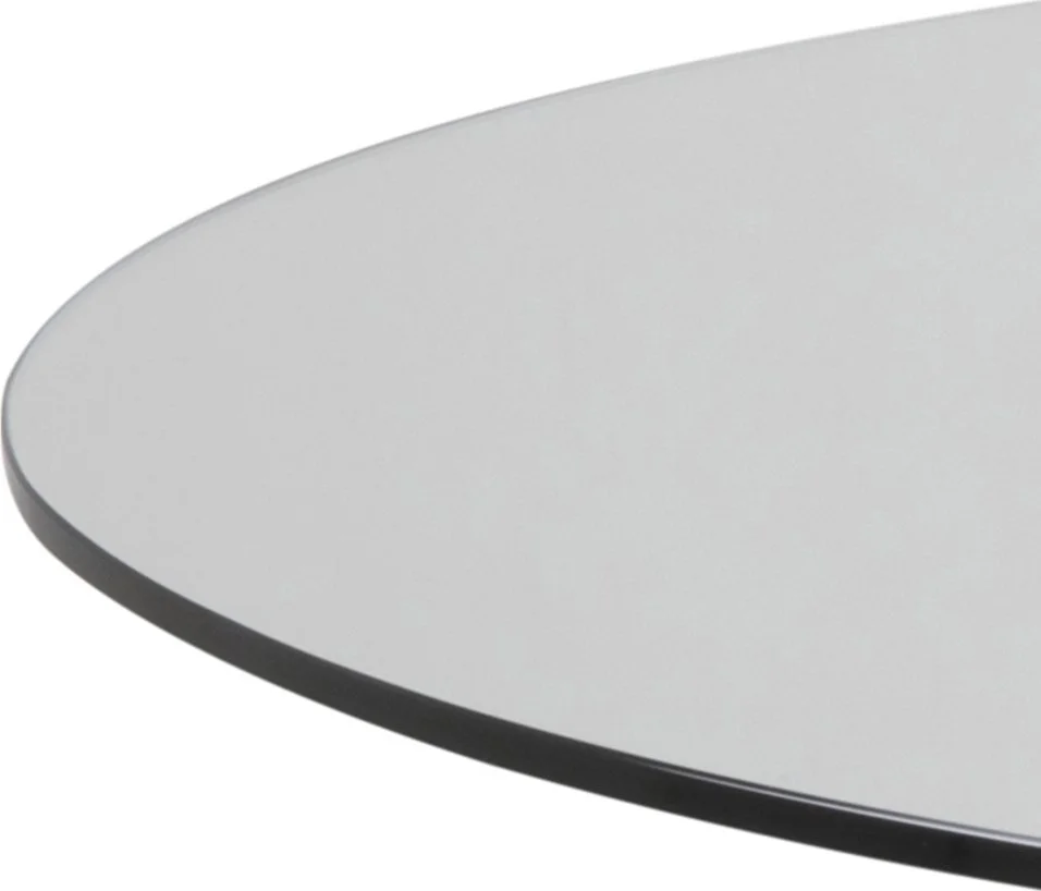 Matbord med ben av metall. Bordsskiva av tempererat glas.