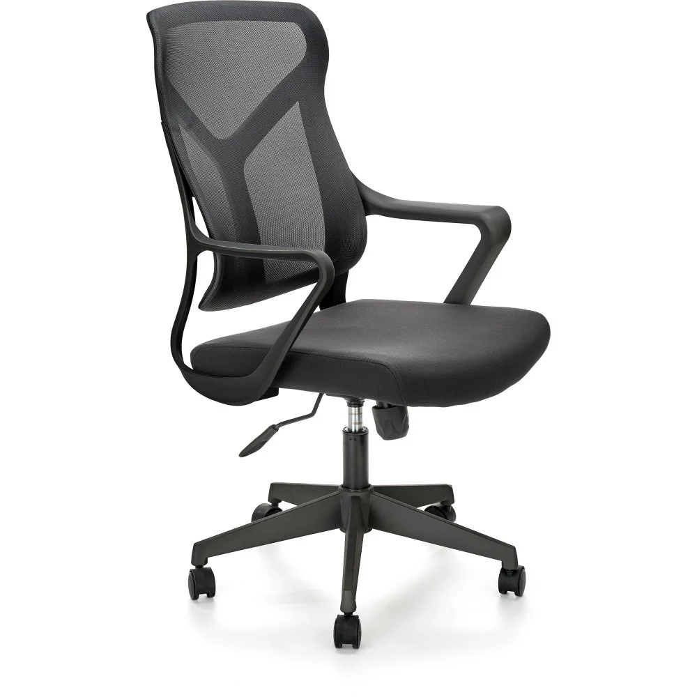 Kontorsstol med tiltmekanism och ställbar höjd. Ventilerande meshtyg i ryggstödet.