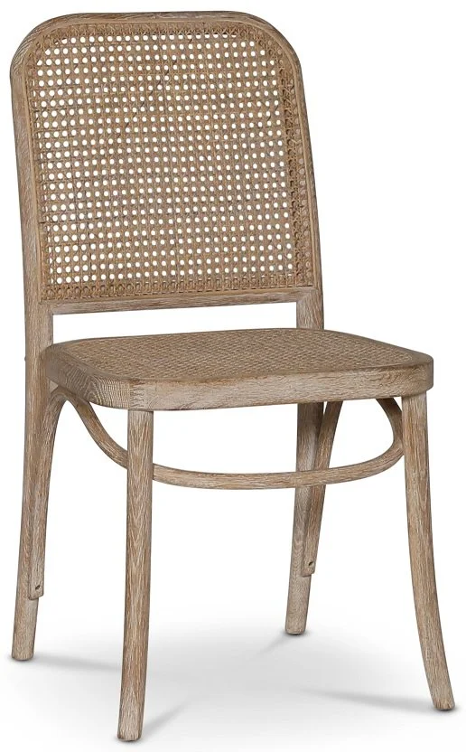 Stilren stol, vitpigmenterat borstat utseende, böjträ med sits- och rygg klädd i rotting. Stommen är borstad massiv alm som är vitpigmenterad, där man använt sig av teknik för att böja träet. Vilket ger stolen dess vackra naturliga former. Kombinera gärna med något av våra matbord.