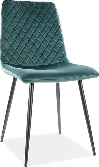 Matstol av metall. Klädd med polyestertyg.