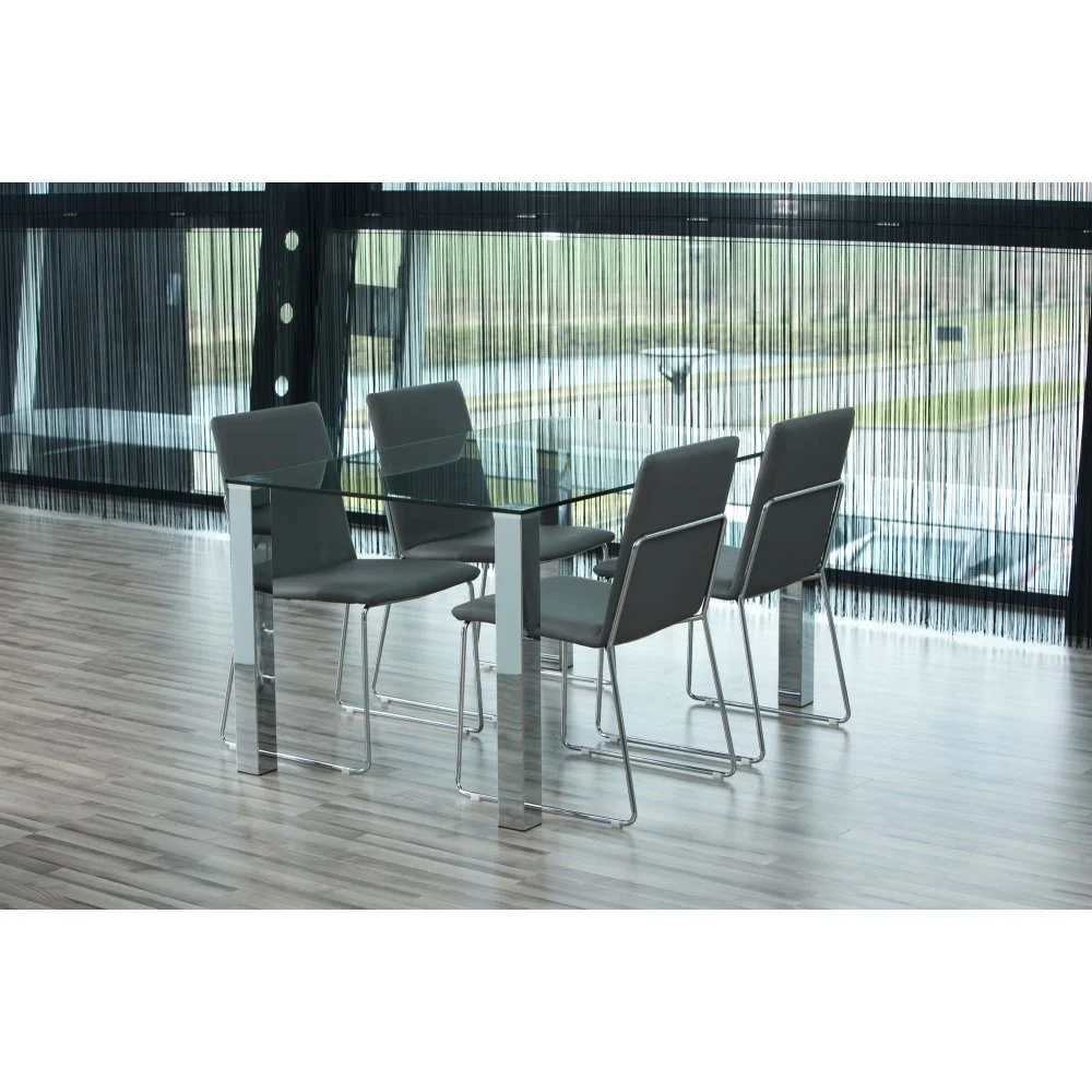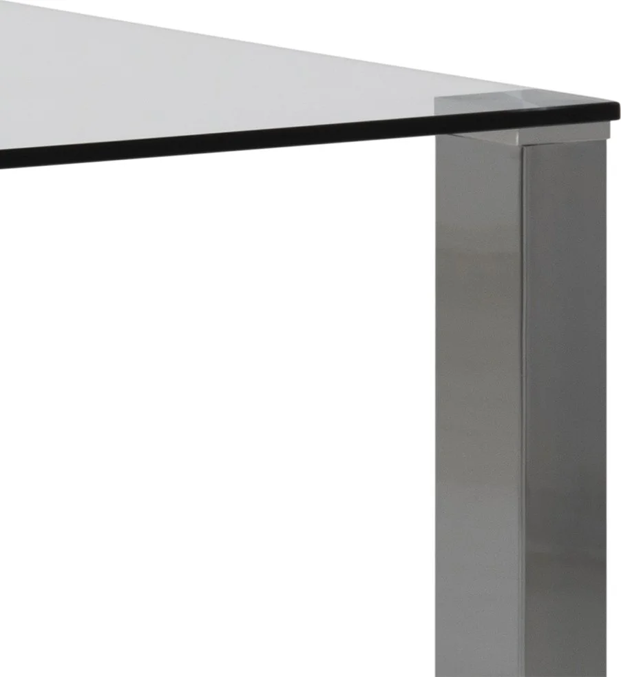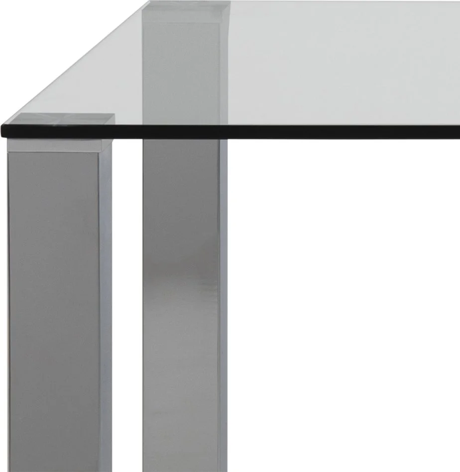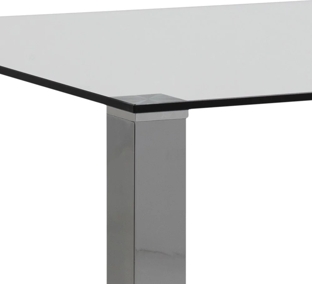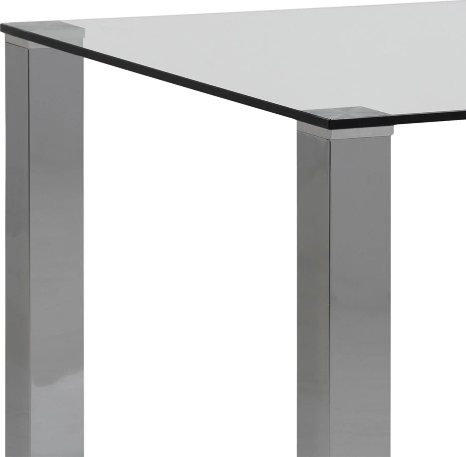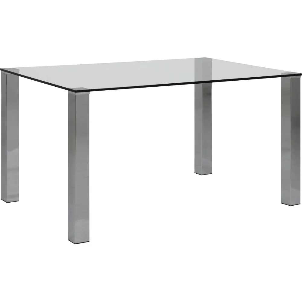 Matbord med ben av metall. Bordsskiva av tempererat glas.