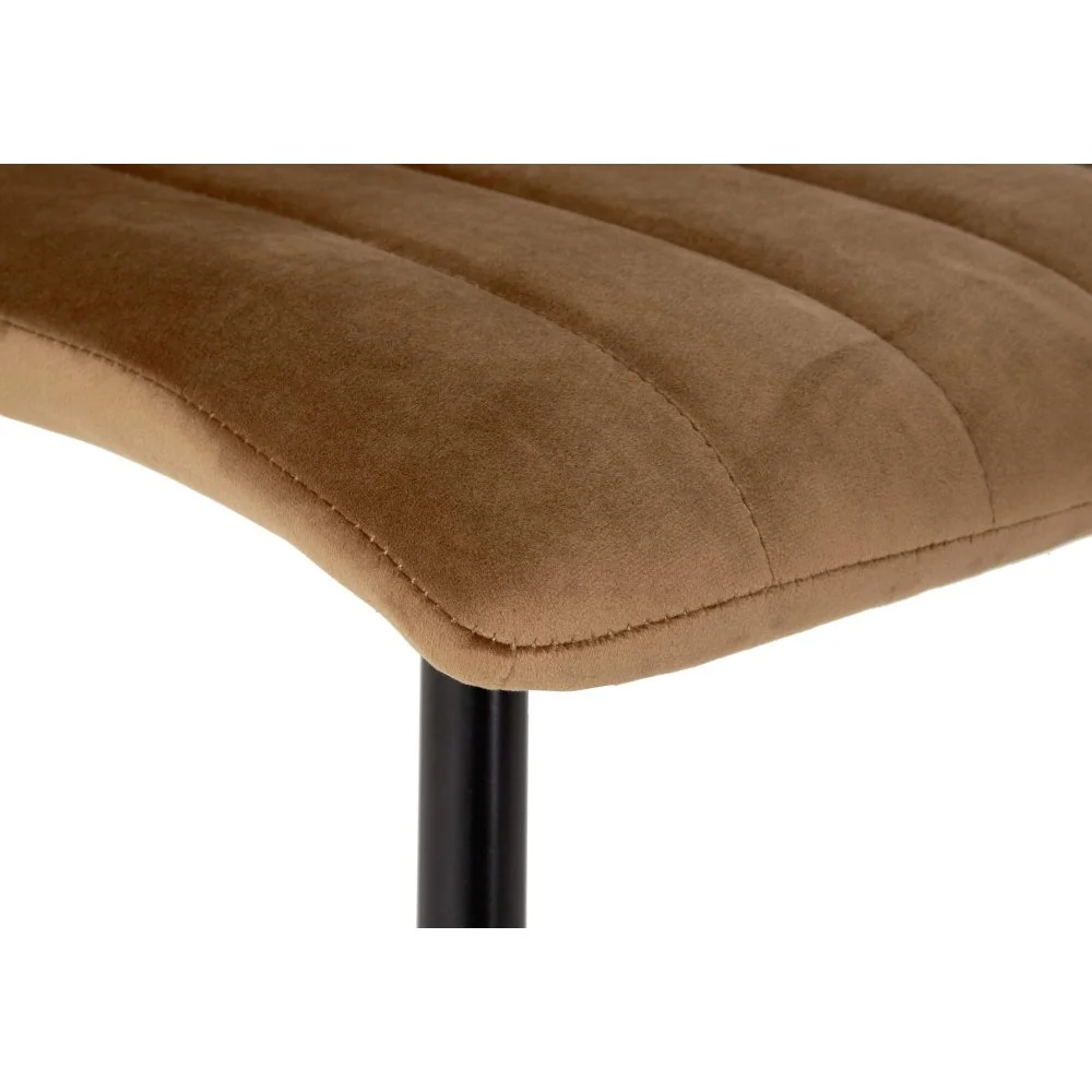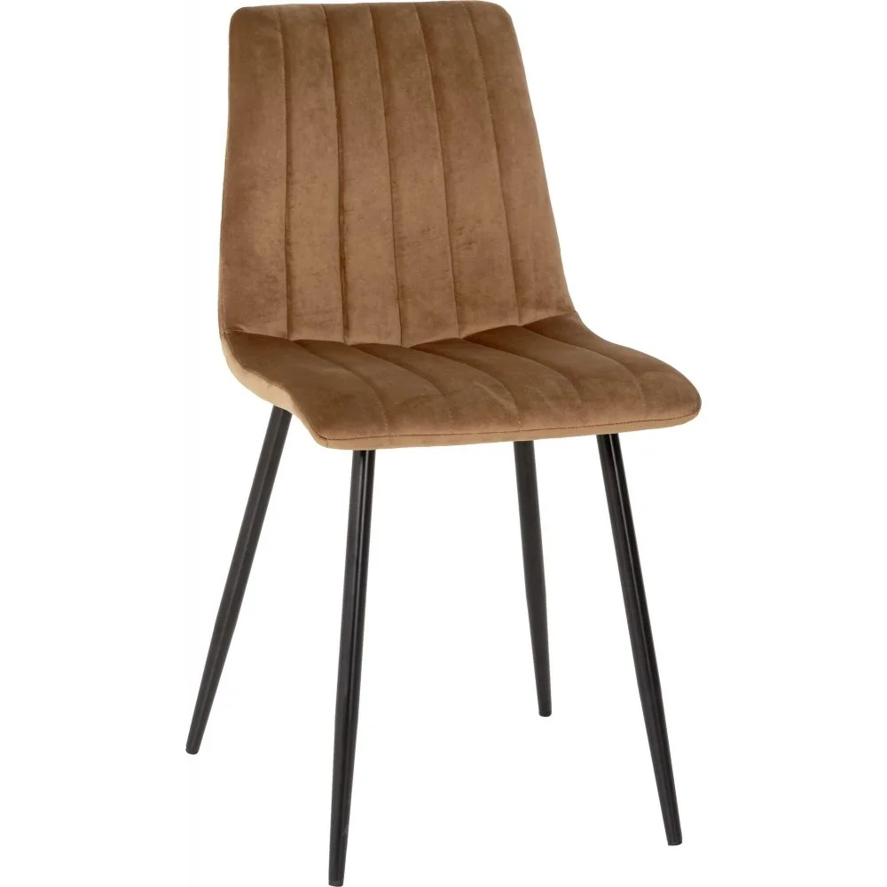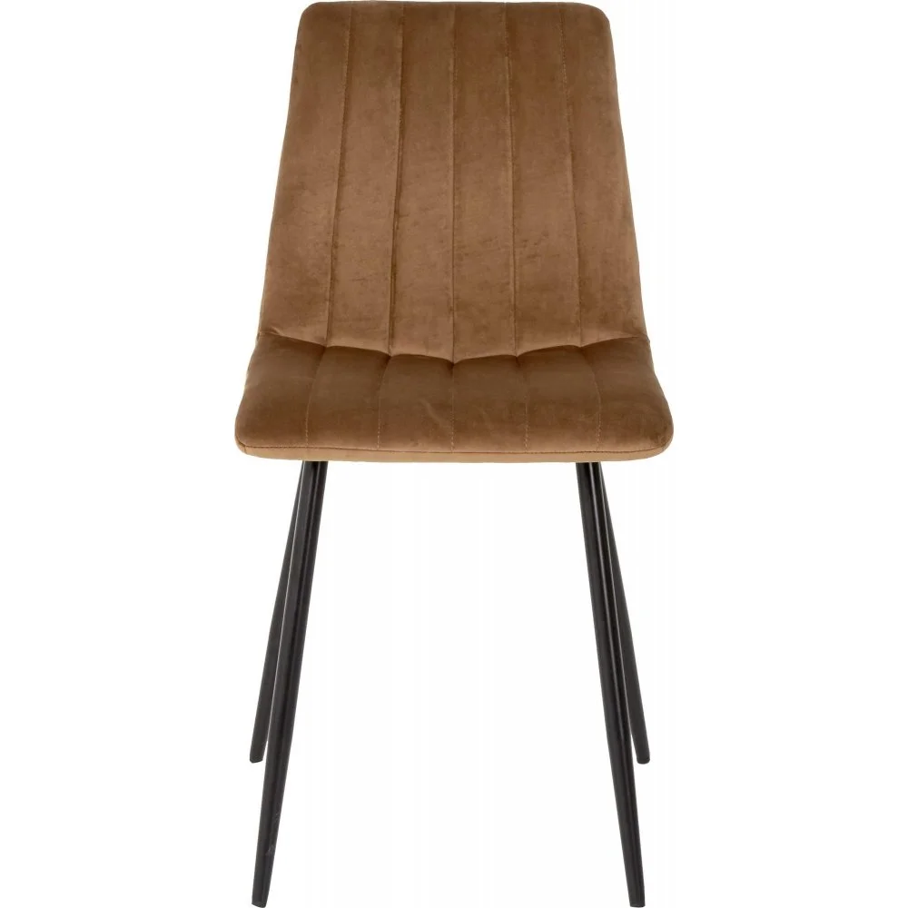 Matstol av kryssfaner och stål. Klädsel av sammet. Stoppning av skum.