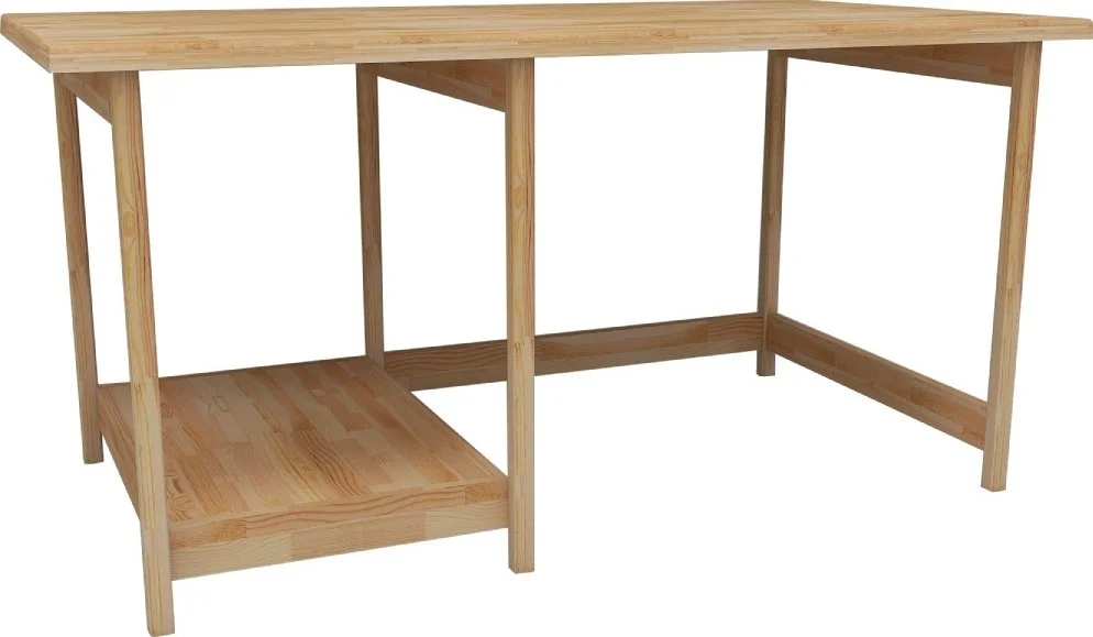Skrivbord av furuträ.
