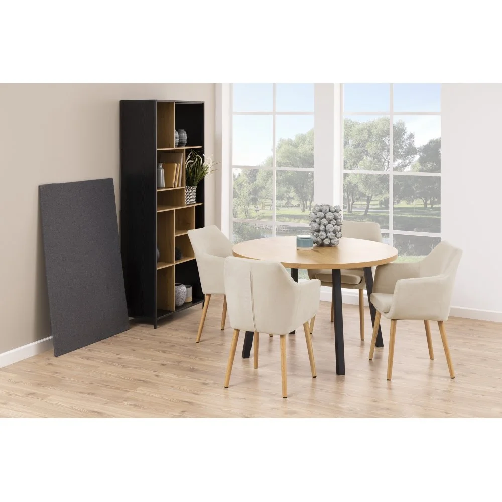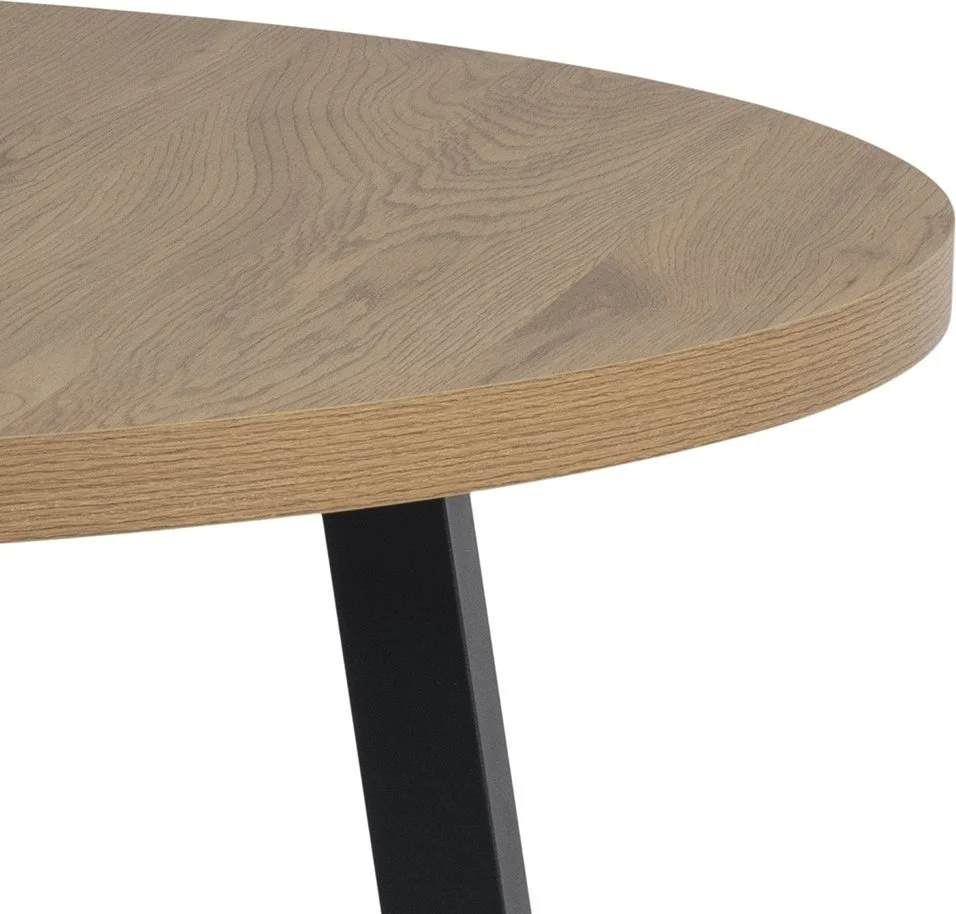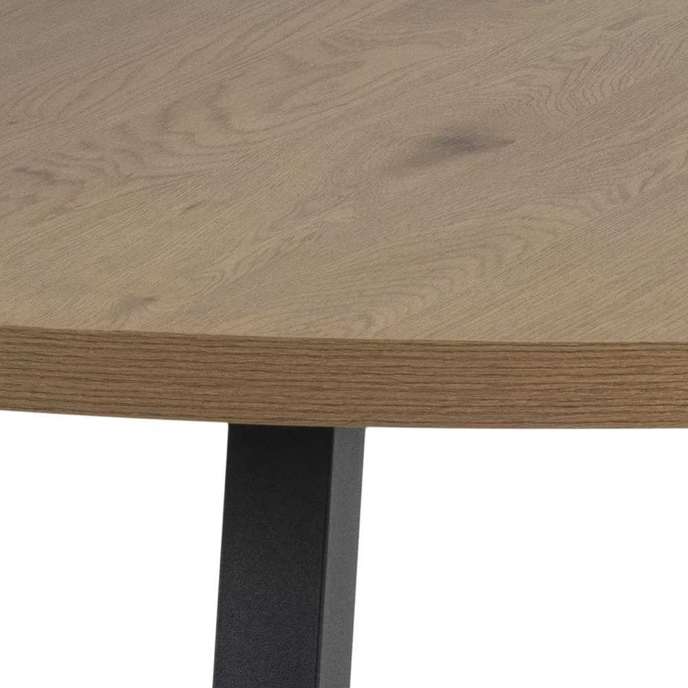 Matbord med ben av pulverlackerad metall. Bordsskiva av melamin och MDF.
