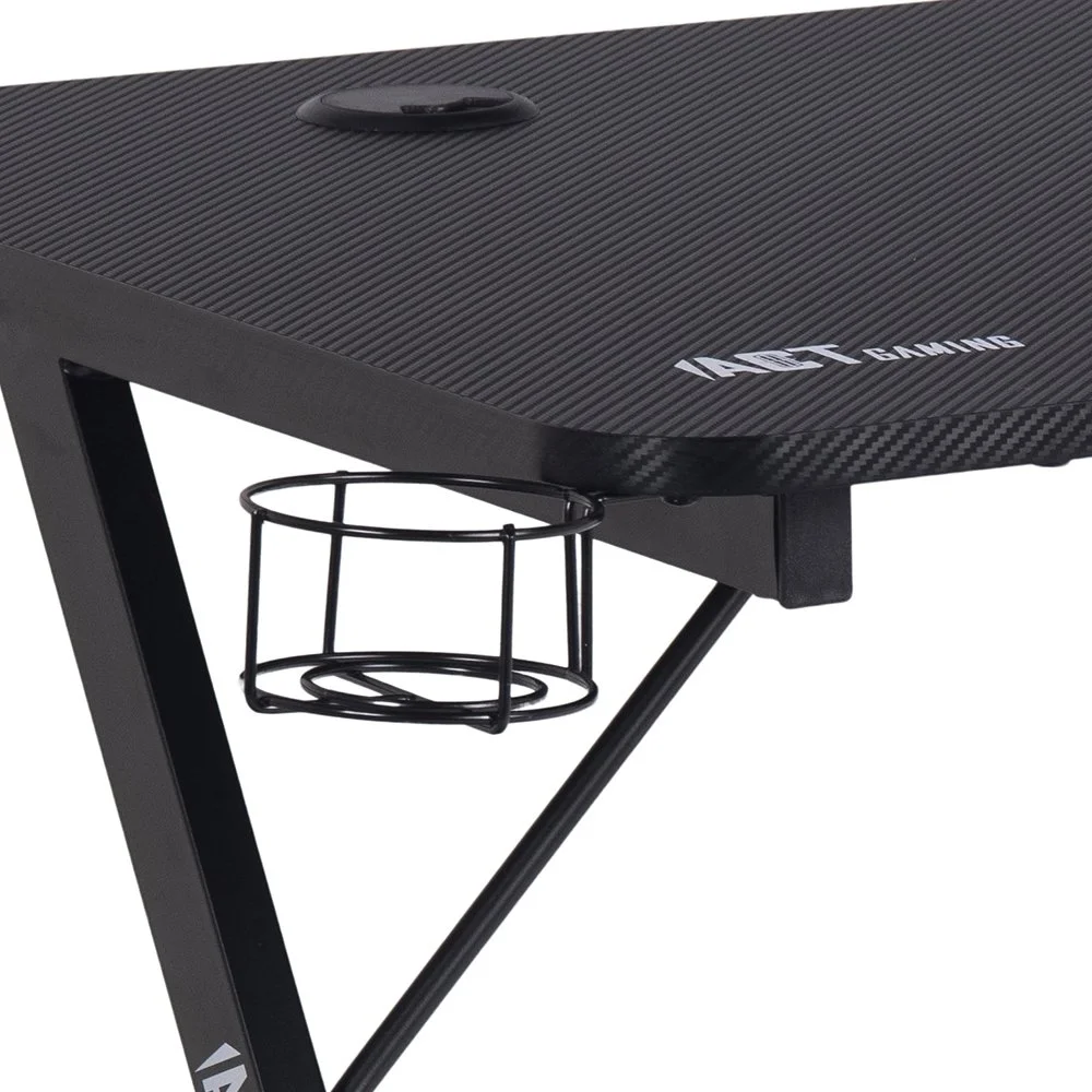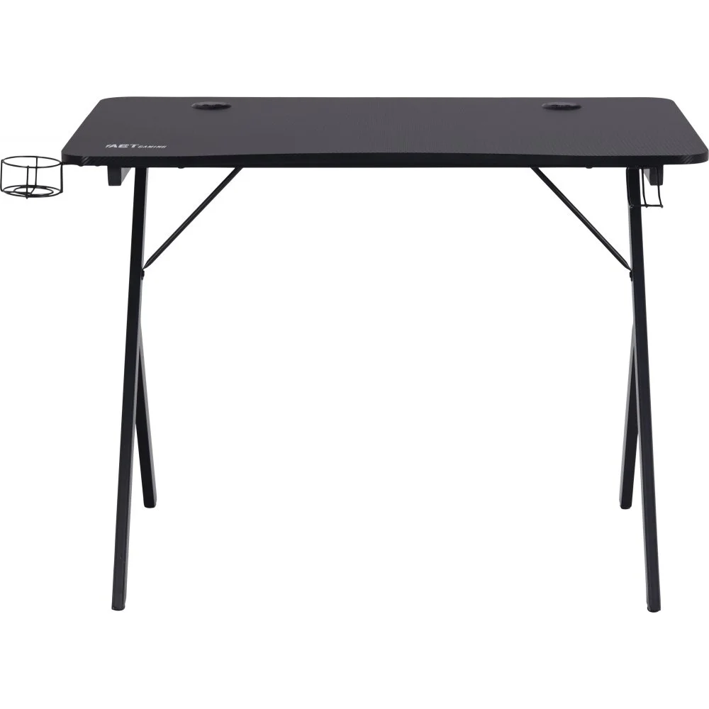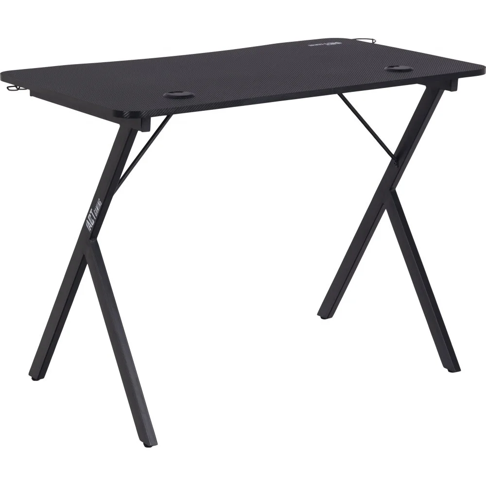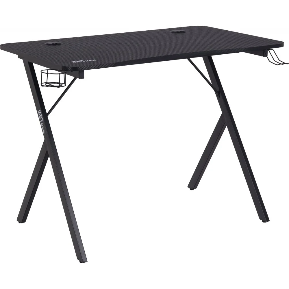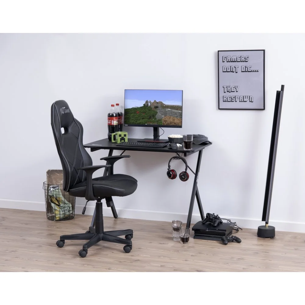 Skrivbord med ben av pulverlackerad metall. Bordsskiva av melamin och MDF.