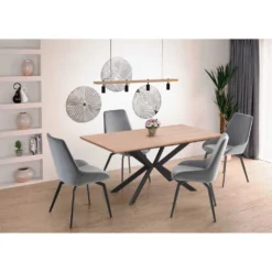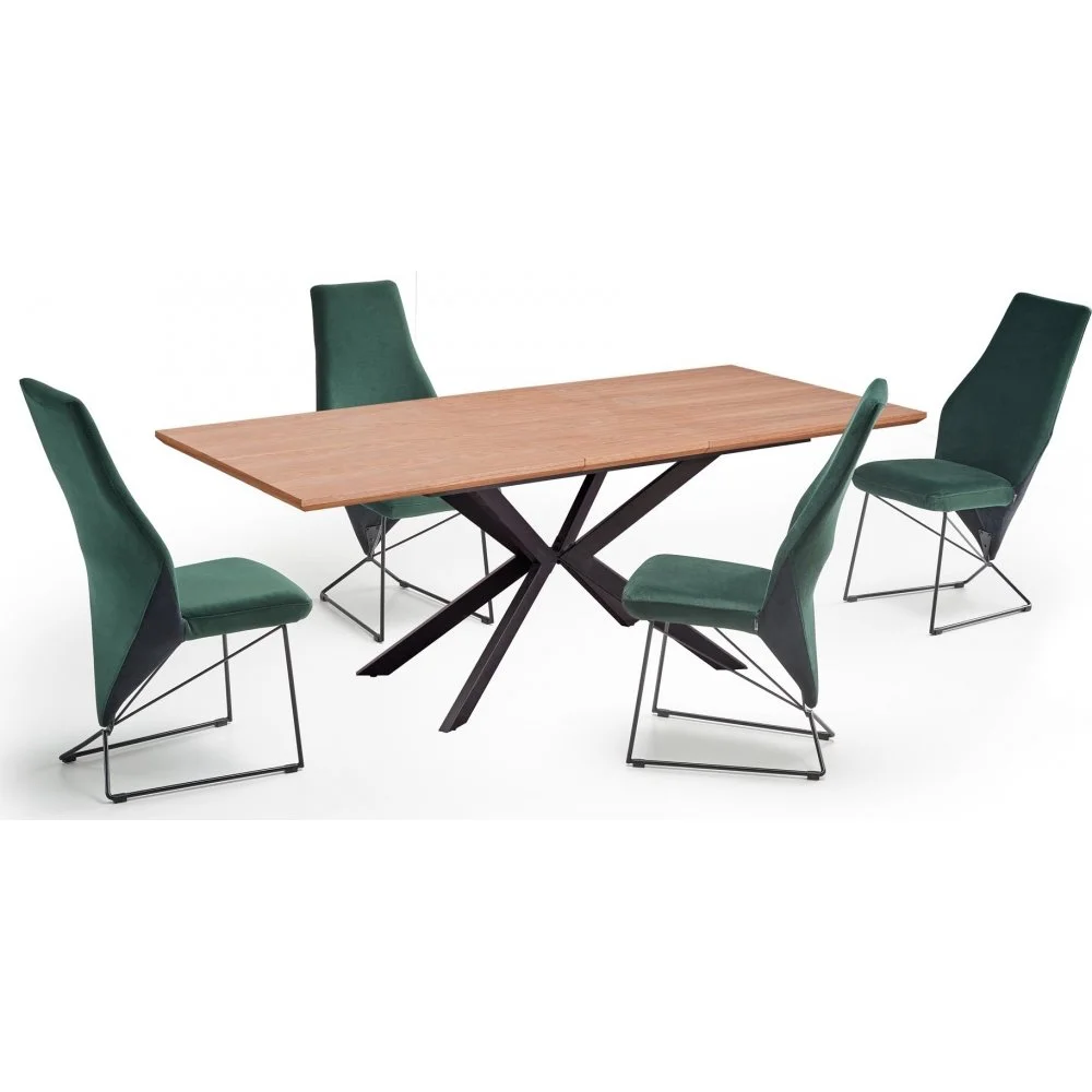 Förlängningsbart matbord av trä med ben av pulverlackerad stål.