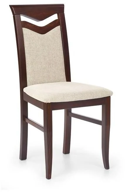 Elegant stol med en klassisk design. Tillverkad i massiv bok med en snygg valnöt imitation och härligt vitt tyg på både sitsen och ryggstödet för maximal komfort.