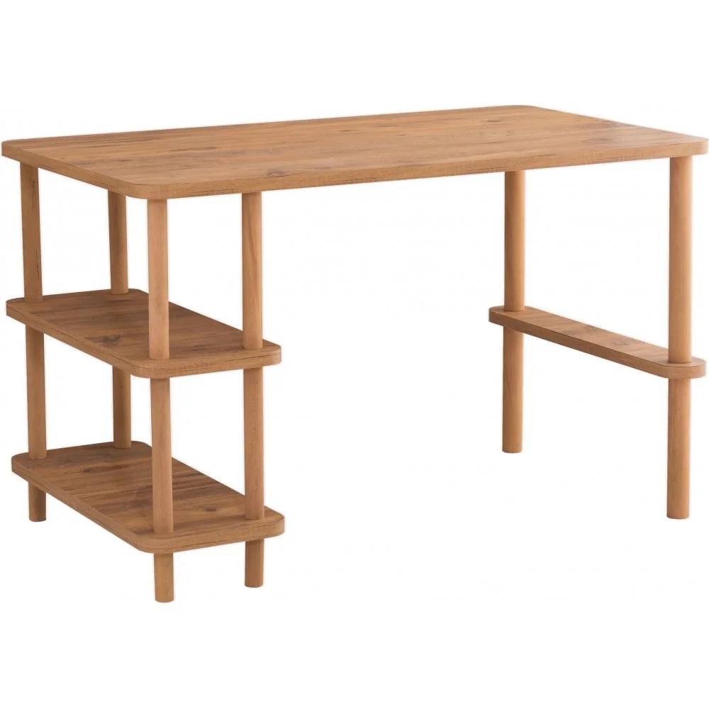 Skrivbord av melaminbelagd spånskiva och avenbok.