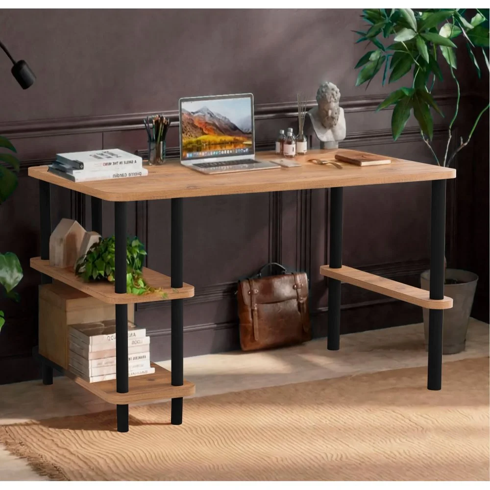 Skrivbord av melaminbelagd spånskiva och avenbok.